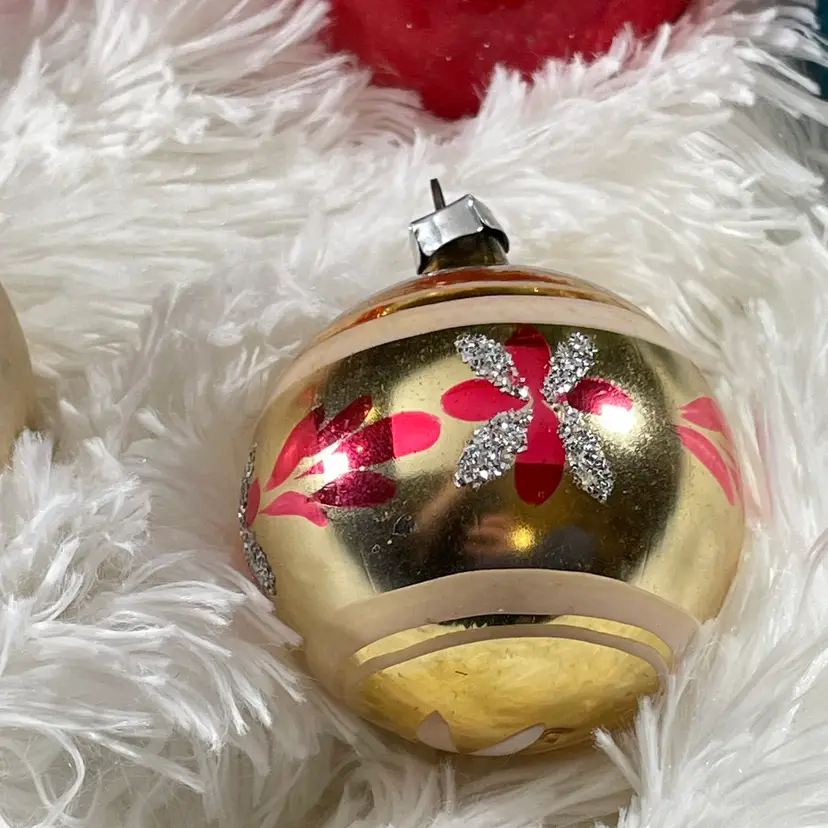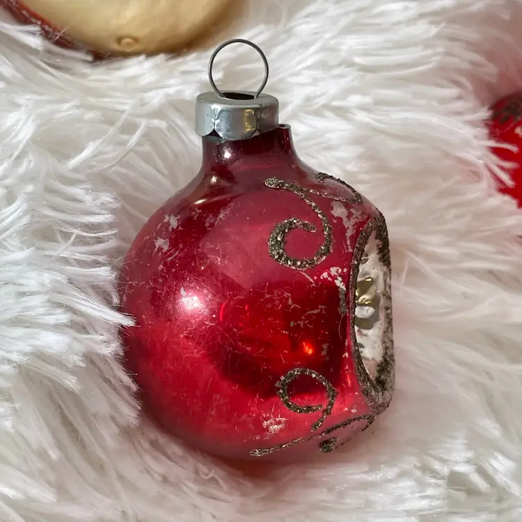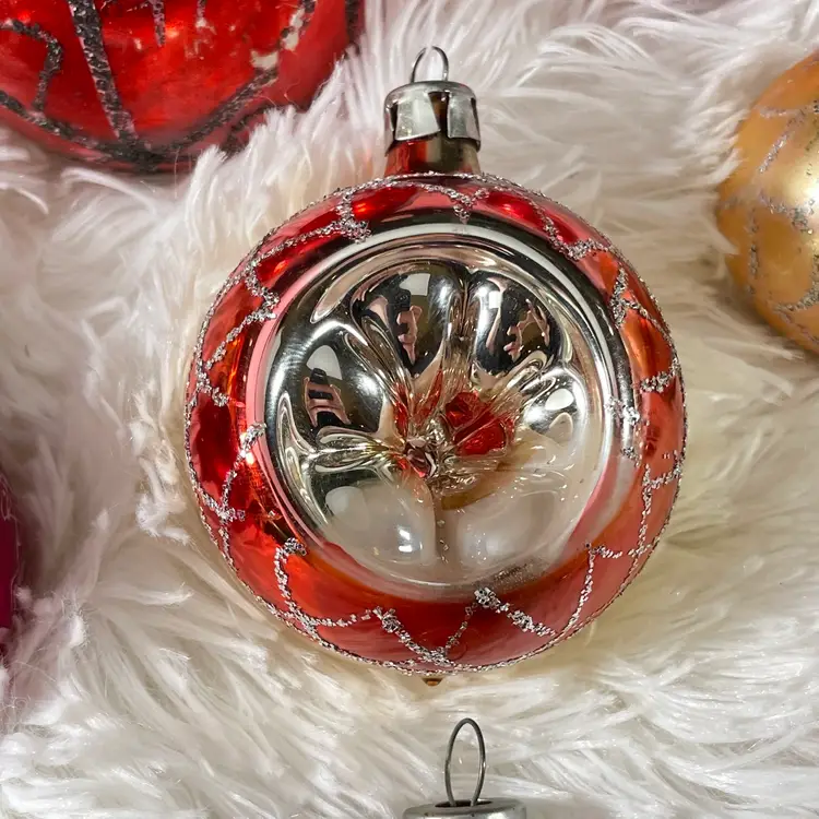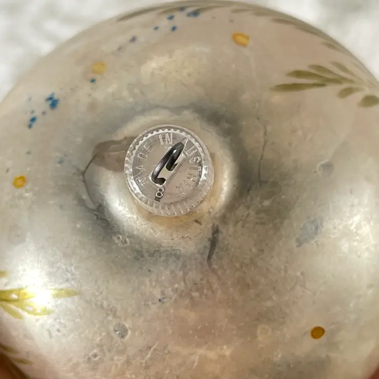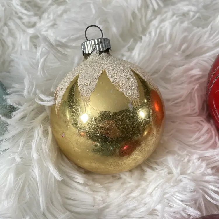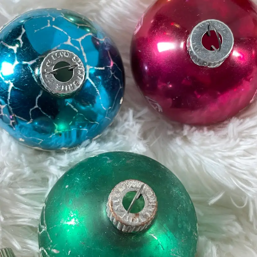 Good Preowned - visible wear and/or minor flaws present. Many show wear to their outer finish. All are structurally sound, but 1 ornament does have a crack at the top (the hand painted Austria ornament pictured). A couple have chips under the cap & one seems to have a replaced cap that is too small for it, but it is securely in place (red indent w/ unmarked cap).
