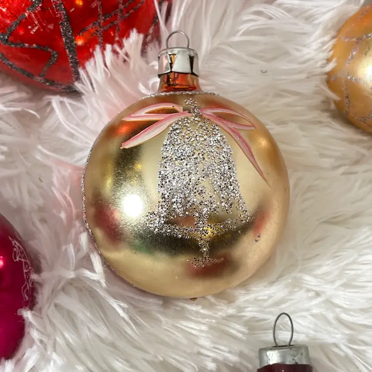 West Germany, Unknown Brand(s): 1 gold single indent with hand painted details & silver glitter 1 red bell with black mica design 1 cream with gold stars of David (chip under cap)