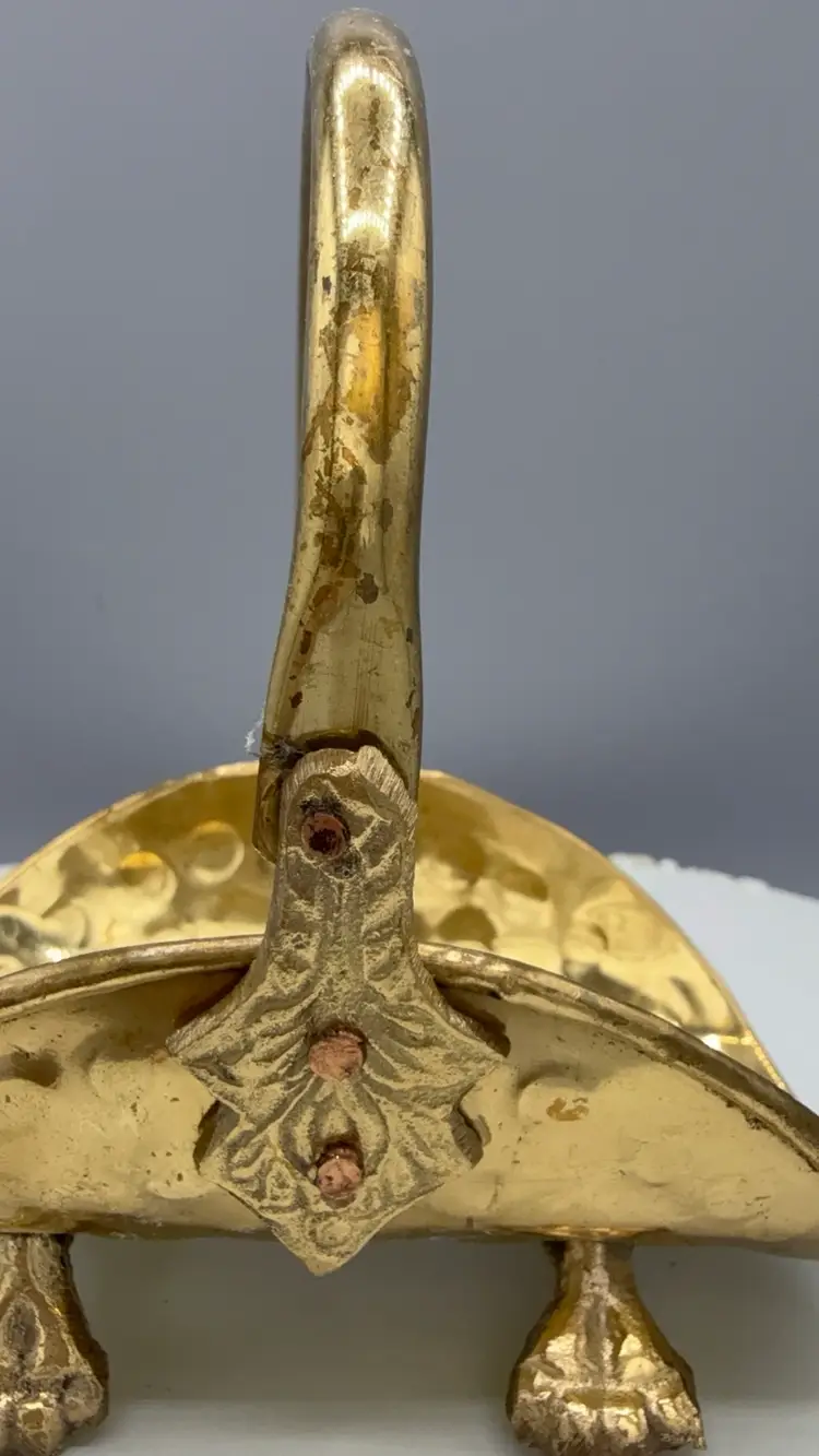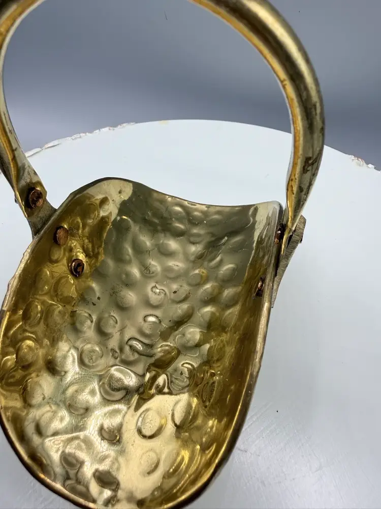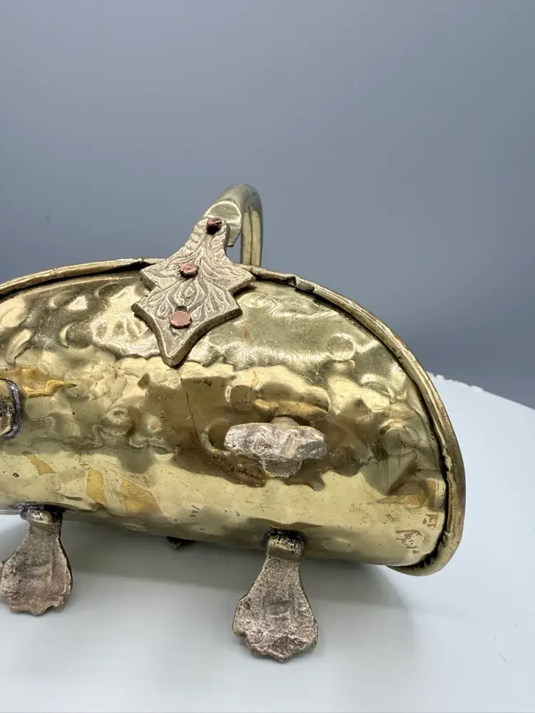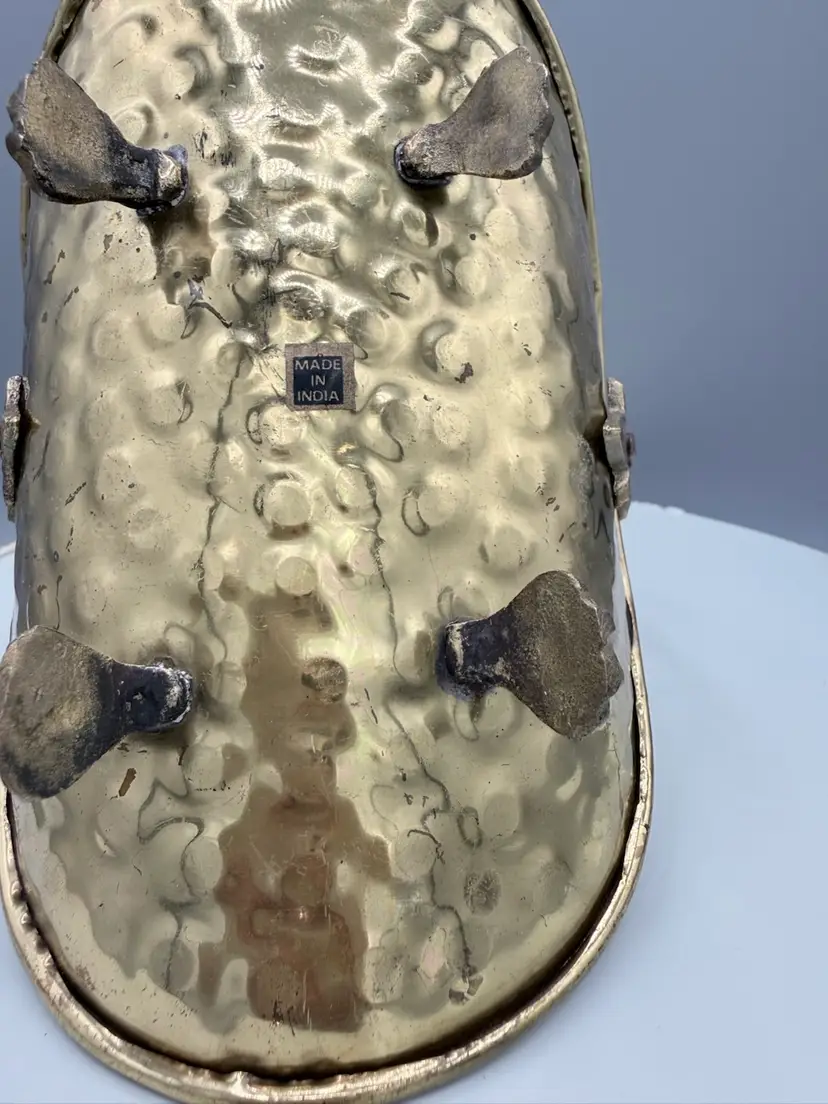 Brass with copper screws/rivets. Made in India. Great vintage condition with minor wear consistent for age. Replica of Log Basket Holder