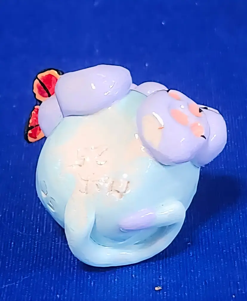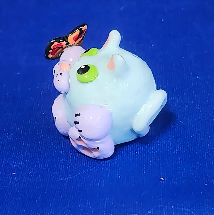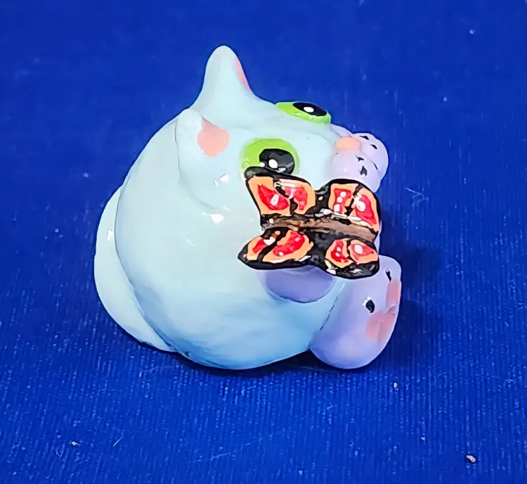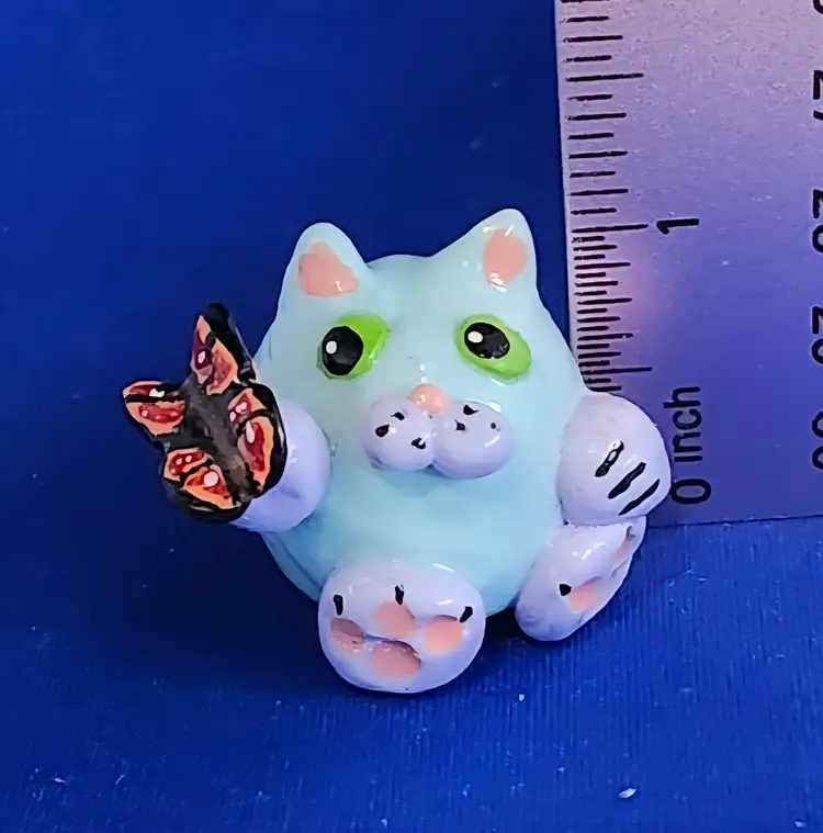 Each of Shirley’s Cats is hand-sculpted and hand-painted. No two will be exactly alike. Any “imperfections” come from the sculpting and painting process. These can include (but not limited to) paint splatters, small divots and pits, and/or rough patches.