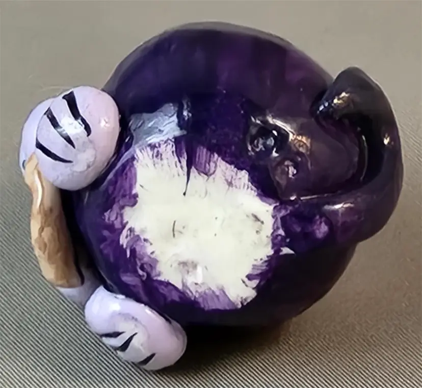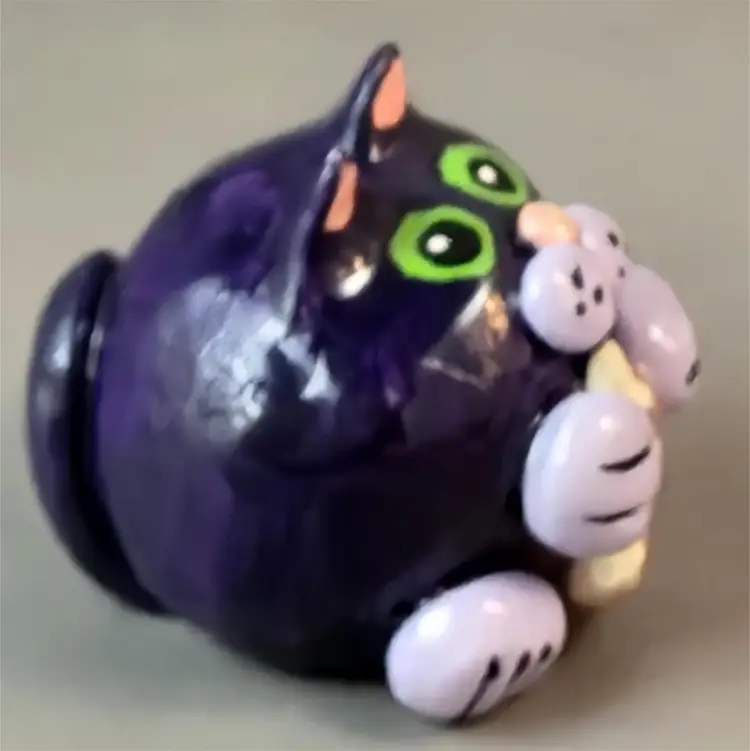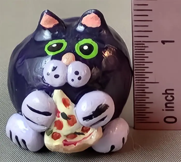Each of Shirley’s Cats is hand-sculpted and hand-painted. No two will be exactly alike. Any “imperfections” come from the sculpting and painting process. These can include (but not limited to) paint splatters, small divots and pits, and/or rough patches.