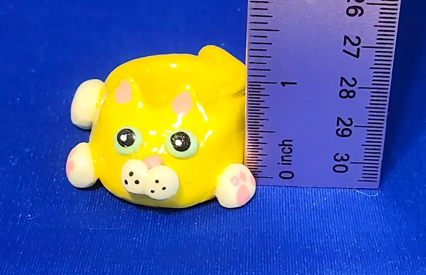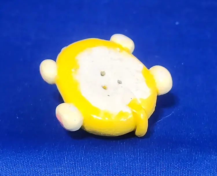 Each piece is hand-sculpted using polymer clay. The center of most pieces have an aluminum foil core (to add strength to the final piece and to ensure even baking) with the exception of very tiny pieces. Acrylic paints are used and each piece is sealed using a resin-based gloss finish (set using UV light).