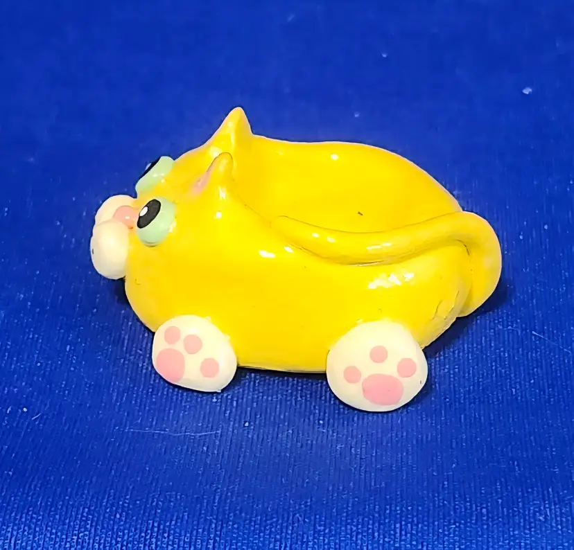 This is a new idea for Shirley's Cats... little trinket dishes, or maybe a tiny planter for like an air plant? This one has holes in the bottom, but I wasn't able to test them and see if water would leach anything out of the resin top coat that would be harmful to plants.