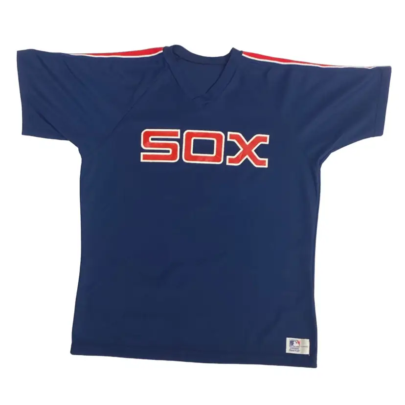 Classic ChiSox v-neck uni, used from 1982-1986, number 20 on back c. 80s, Excellent Condition Made by Sand-Knit, Size XL (23" x 30")