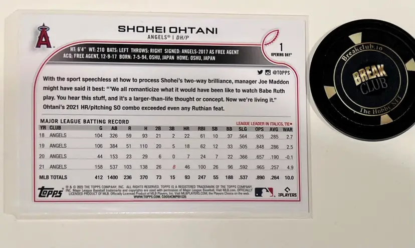 2022 Topps Opening Day card #1 $1 shipping via PWE (stacks with other listings)