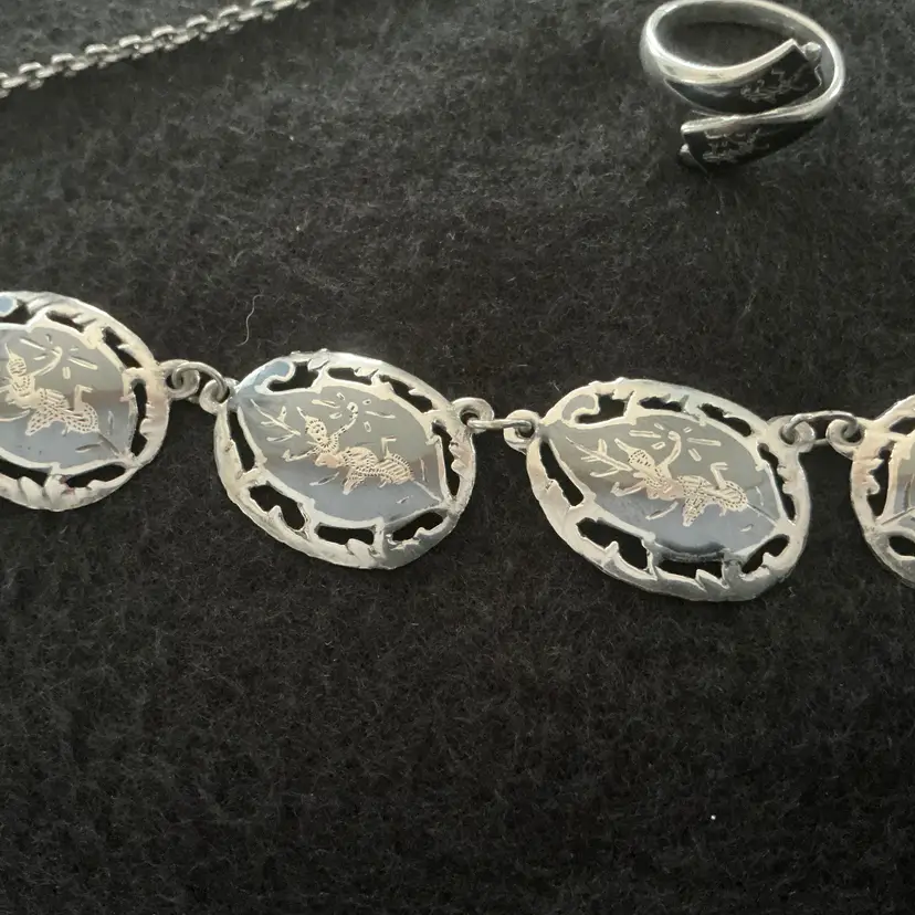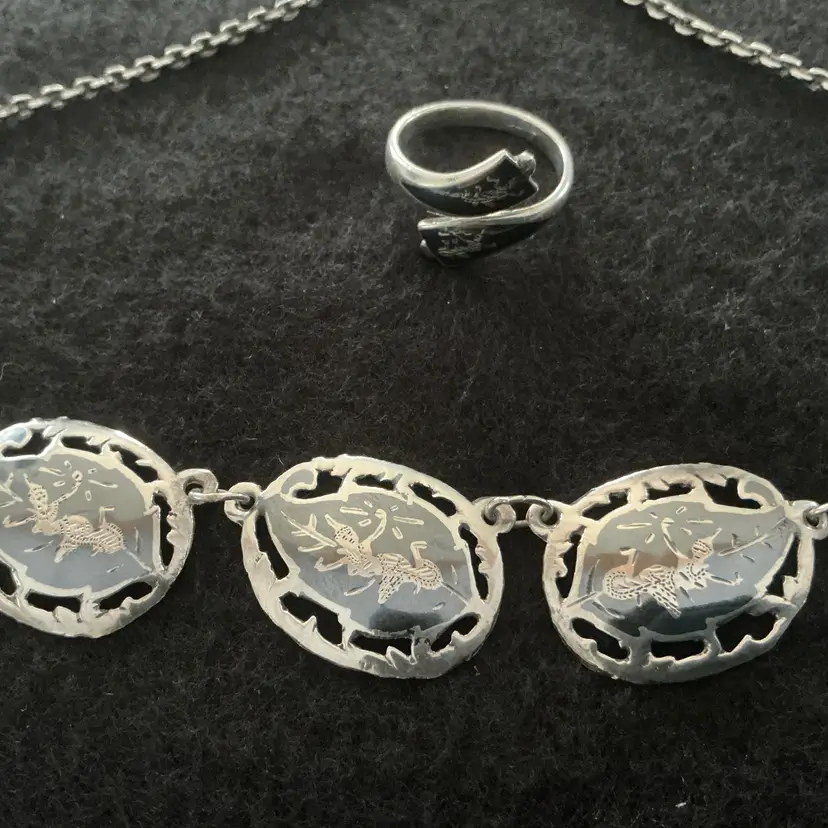 Very nice Vintage Siam Necklace and Ring set Necklace 16" with hook closure Ring 6.5" Both pieces stamped SIAM STERLING Good vintage condition