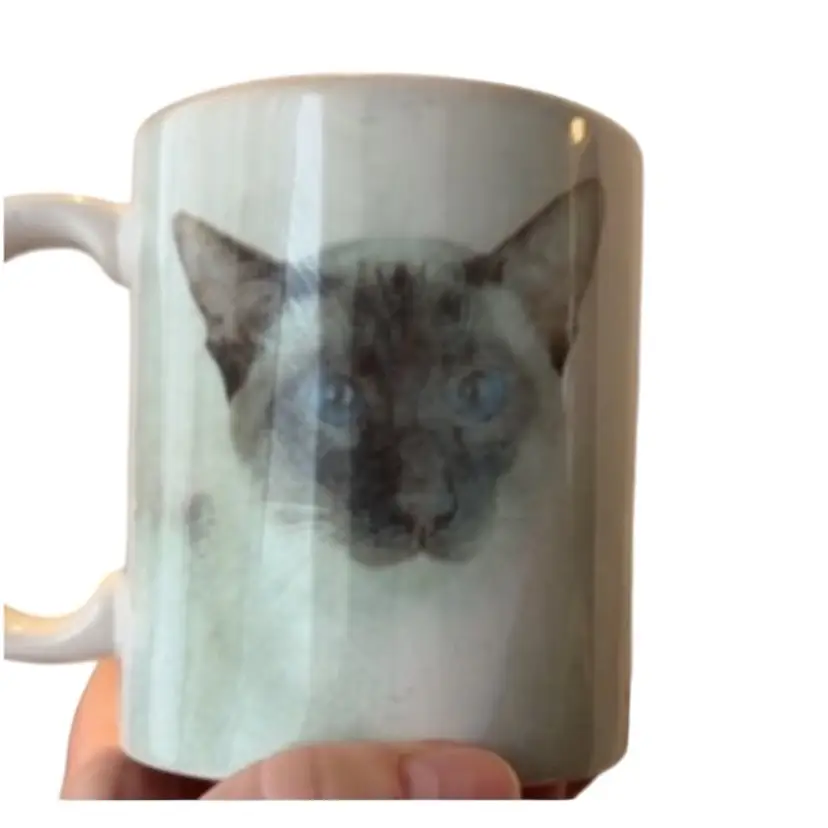 Beautiful realistic blue eye Siamese cat white mug cup for you cat & coffee lovers!
