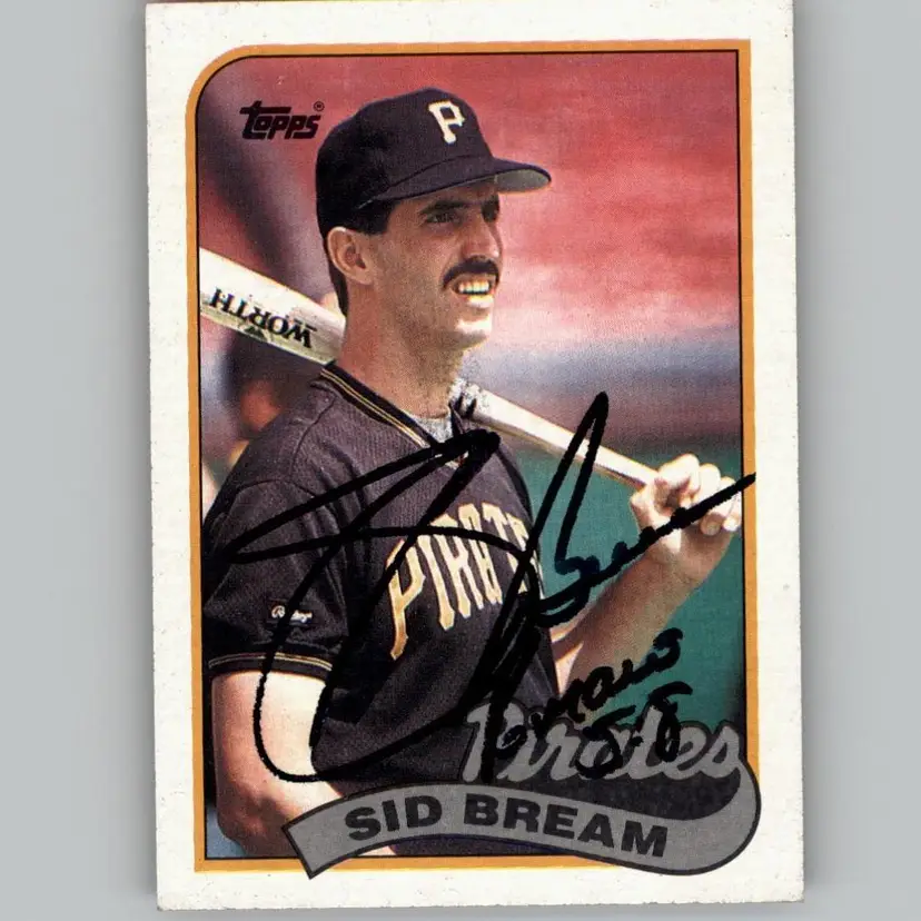 Authentic 1989 Topps baseball card featuring Sid Bream of the Pittsburgh Pirates, adorned with his signature. A treasured item for Pirates fans and autograph card collectors. Your purchase aids Signatures For Soldiers in their mission to support homeless and disabled veterans.