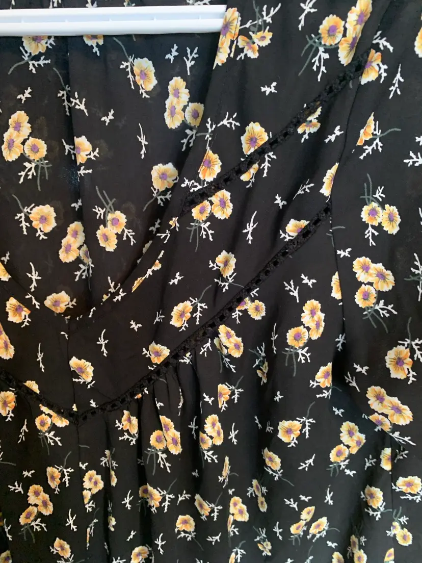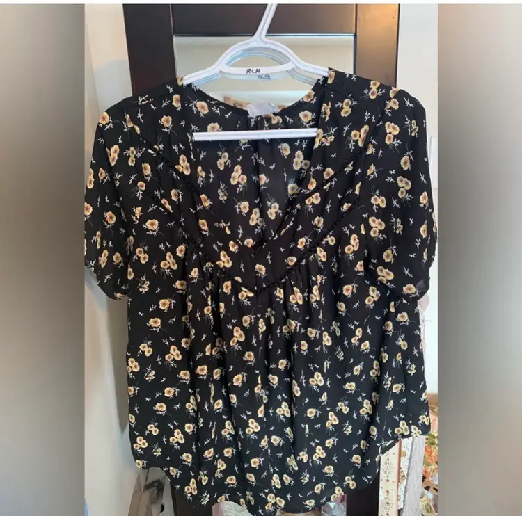 21” pit to pit. Floral v neck with short sleeves.