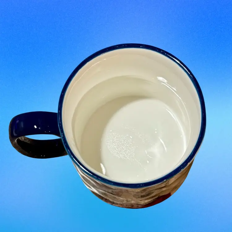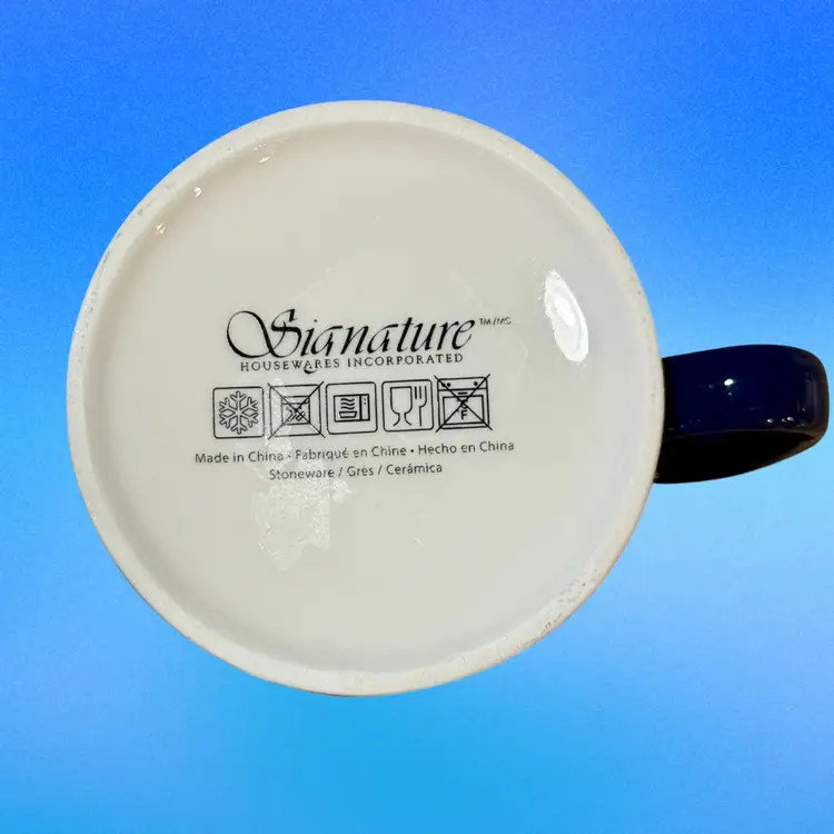 Approx 4”tall x 3.5” at mouth x 5” wide at handle; unsigned; good condition; no issues. Holds 14oz.