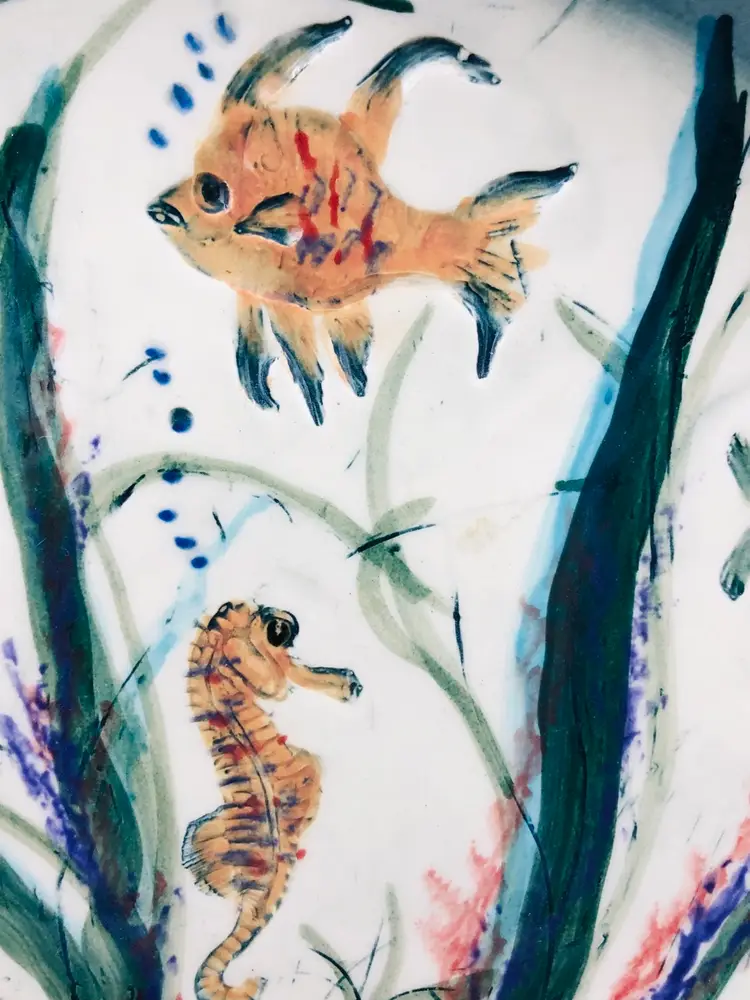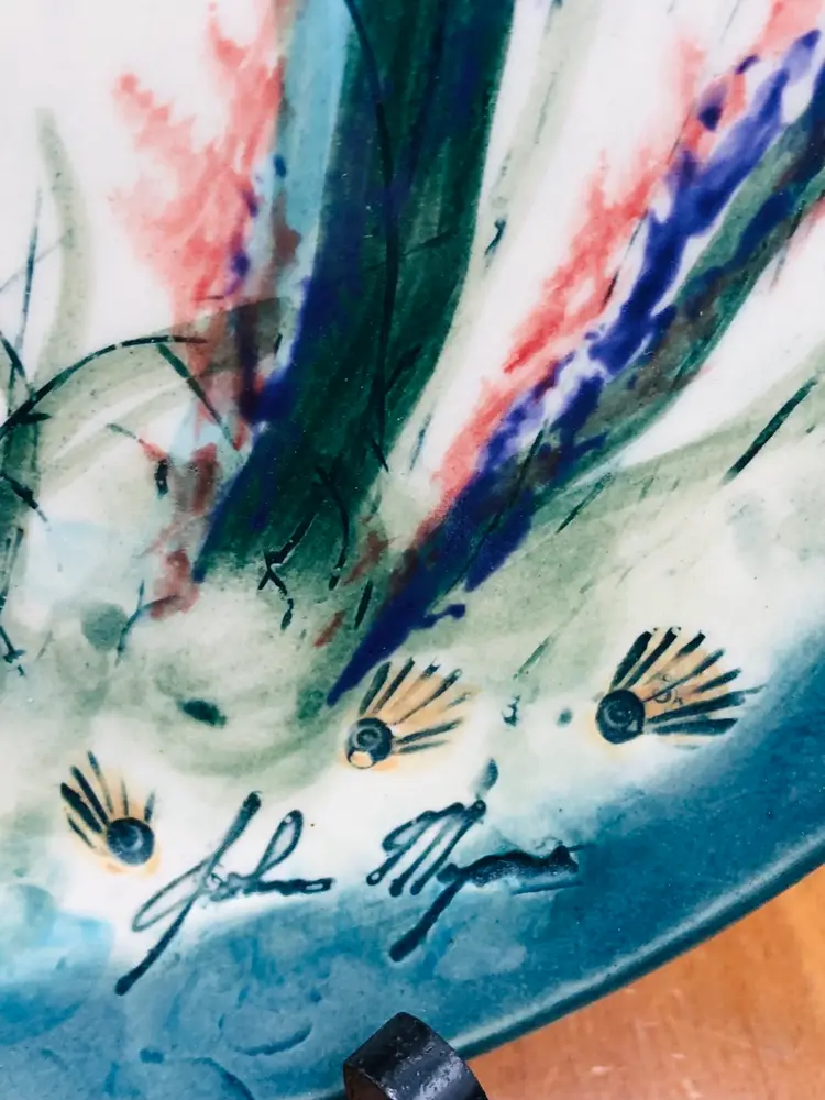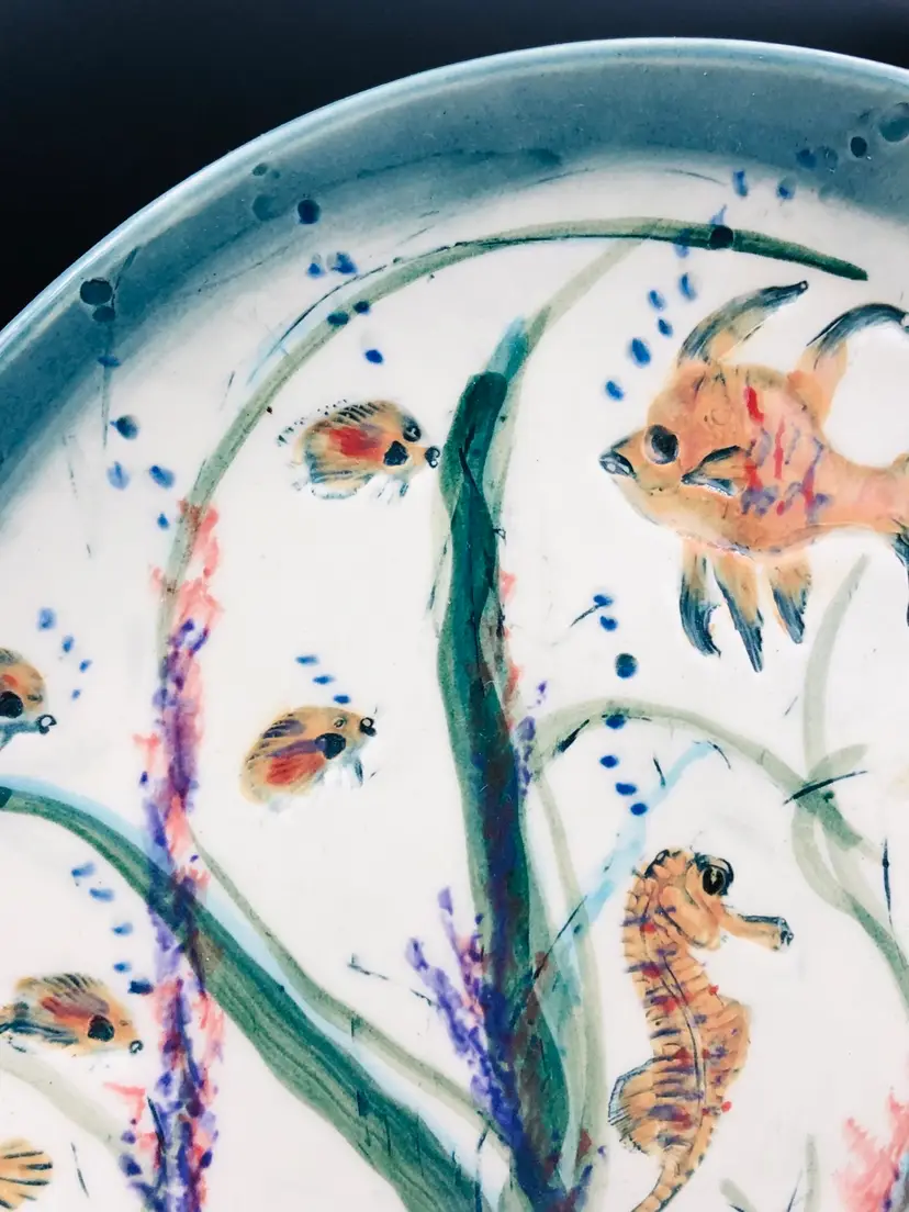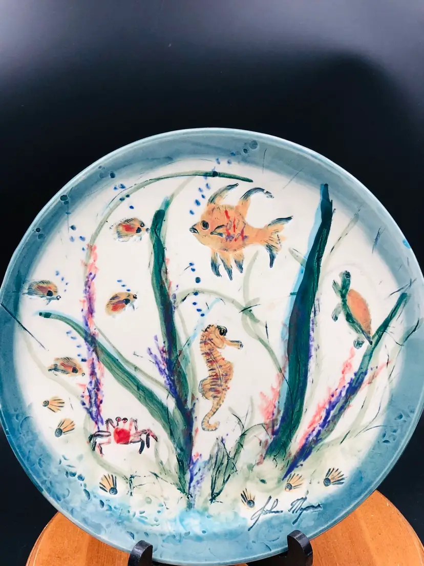 Beautiful under the sea art pottery plate. Glossy finish. Signed can’t make out the signature. 10x10