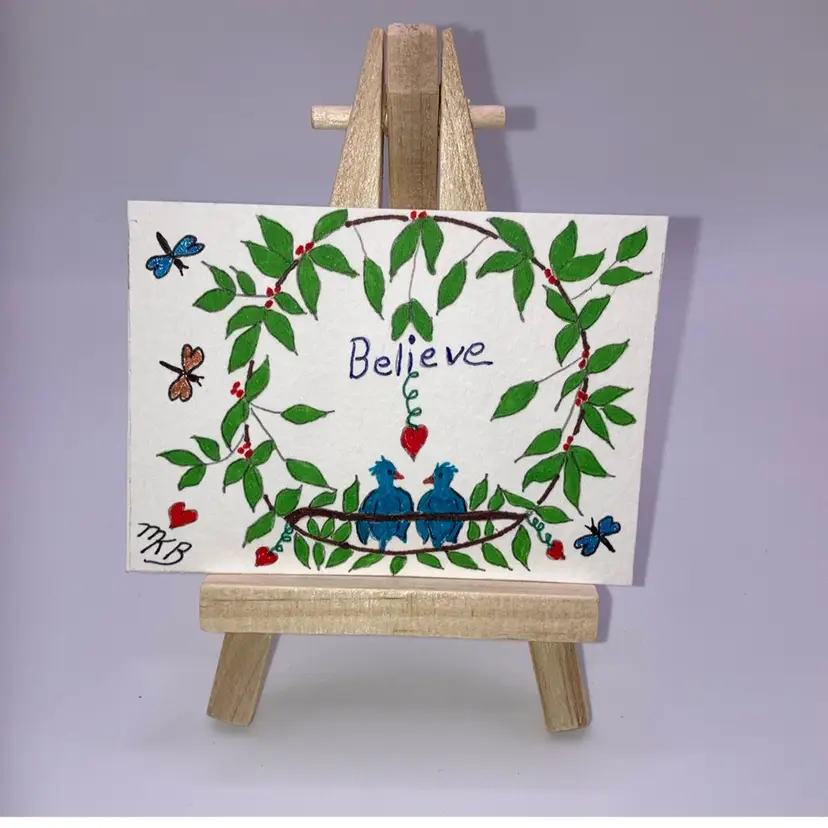 Hand Painted Miniature Artwork 2 1/2" tall by 3" wide! Includes a mini wood art easel for display! NEW to District? Enter code Michel42 into your wallet prior to your first ever purchase and save $5 off of any $10 or more purchase! Give me a Follow and I'll Follow you back! :) Happy Shopping!