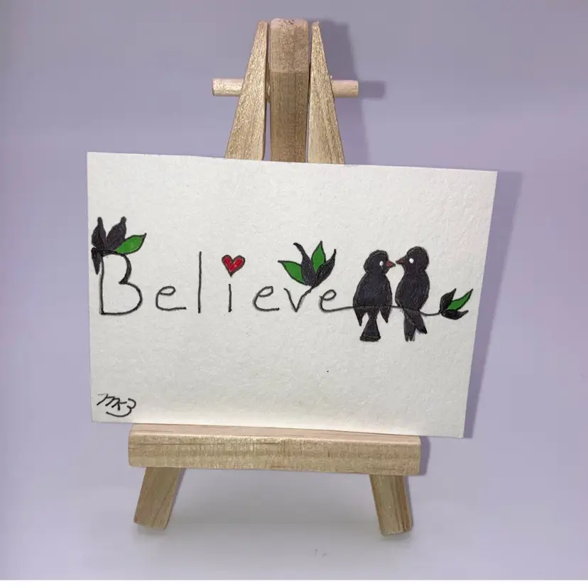 Hand Painted Miniature Artwork 2 1/2" tall by 3" wide! Includes a mini wood art easel for display! NEW to District? Enter code Michel42 into your wallet prior to your first ever purchase and save $5 off of any $10 or more purchase! Give me a Follow and I'll Follow you back! :) Happy Shopping!
