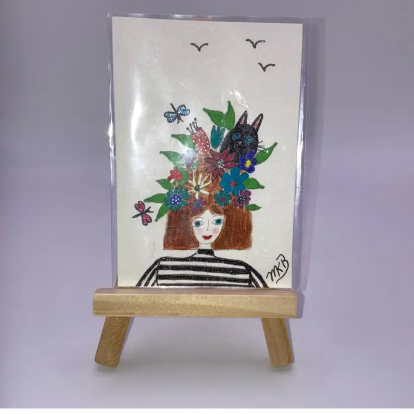 Hand Painted Miniature Artwork 2 1/2" wide by 3" tall! Includes a mini art easel for display! NEW to District? Enter code Michel42 into your wallet prior to your first ever purchase and save $5 off of any $10 or more purchase! Give me a Follow and I'll Follow you back! :) Happy Shopping!