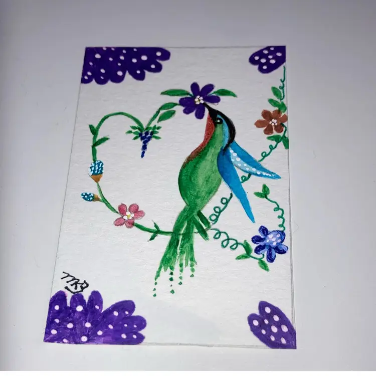 Hand Painted Miniature Artwork 2 1/2" wide by 3" tall! Includes a mini wood art easel for display! NEW to District? Enter code Michel42 into your wallet prior to your first ever purchase and save $5 off of any $10 or more purchase! Give me a Follow and I'll Follow you back! :) Happy Shopping!