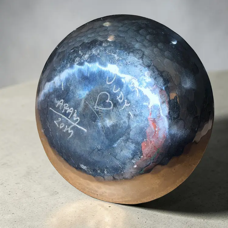 This example is signed by Michael Aram and dated, and it also includes a personal inscription reading “For Judy” with a heart. It is additionally stamped with the Michael Aram logo on the underside.