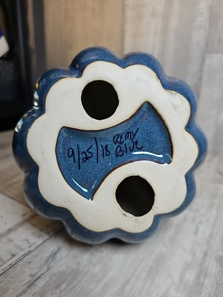 Description: Charming studio pottery pumpkin featuring a deep glazed finish and hand-signed base dated 9/25/18. Ideal for Halloween or Thanksgiving décor, this handmade ceramic adds warmth and artisan appeal to any autumn display.