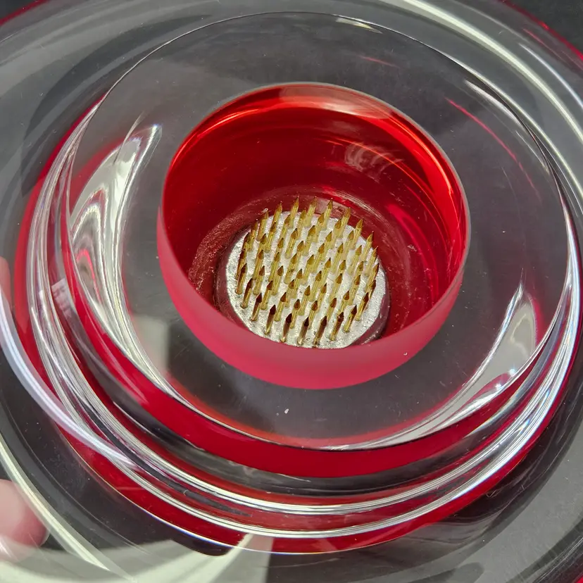 Sculpture flower frog by artist David New-Small, 2.25"x6.5"x5.5", no chips or cracks, shelf wear on bottom.