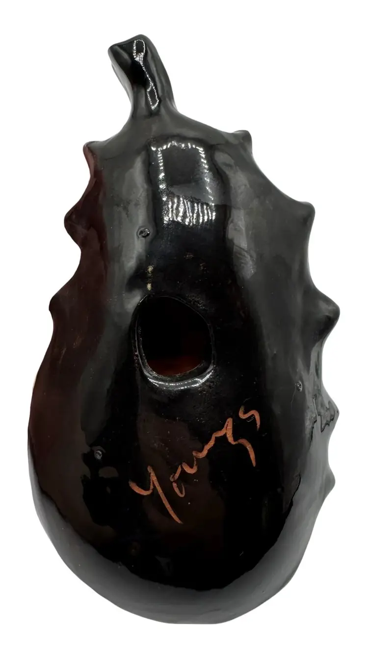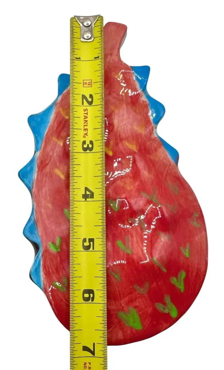 Original work by Kathryn Youngs; it appears to be an early work based on the style of hand painting and lack of signature black outlines. It is shaped like an abstract, spiky fruit.