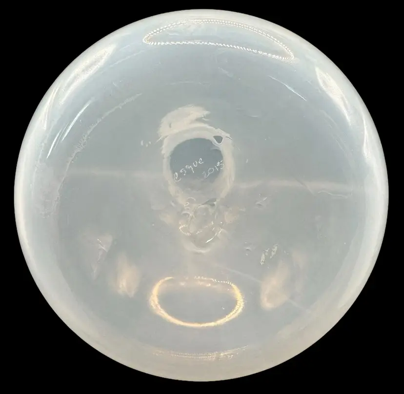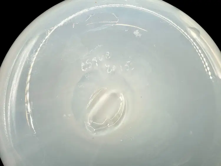 Gorgeous decanter and wine glass set made by Esque Studio in Portland, Oregon. It is a ghostly, opalescent bluish white.