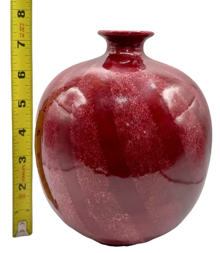 Condition: Minor chipping on bottom edges, potentially due to firing process. Dimensions: 7.5” tall