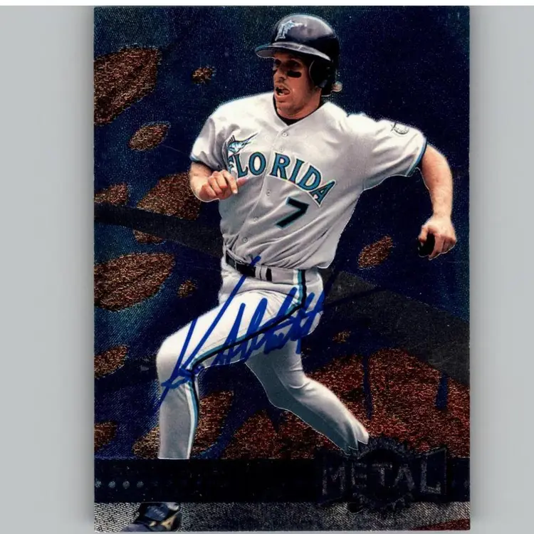Dive into baseball nostalgia with this 1996 Fleer Metal Universe card featuring a Florida Marlins player, complete with a bold autograph. A standout collectible for any Marlins fan and a meaningful way to support Signatures For Soldiers' work with homeless and disabled veterans.