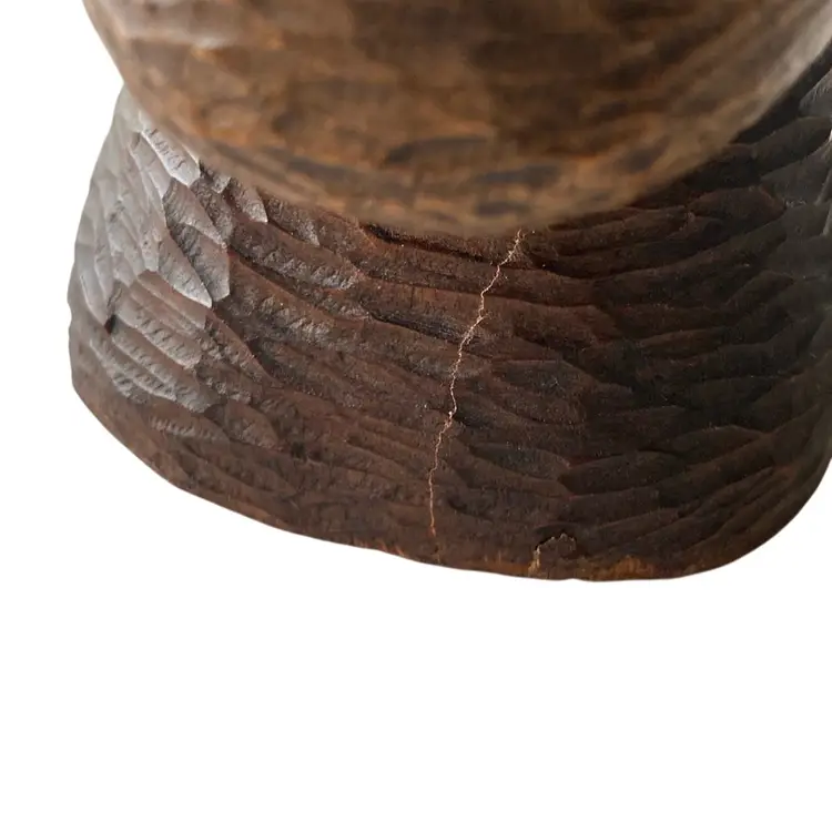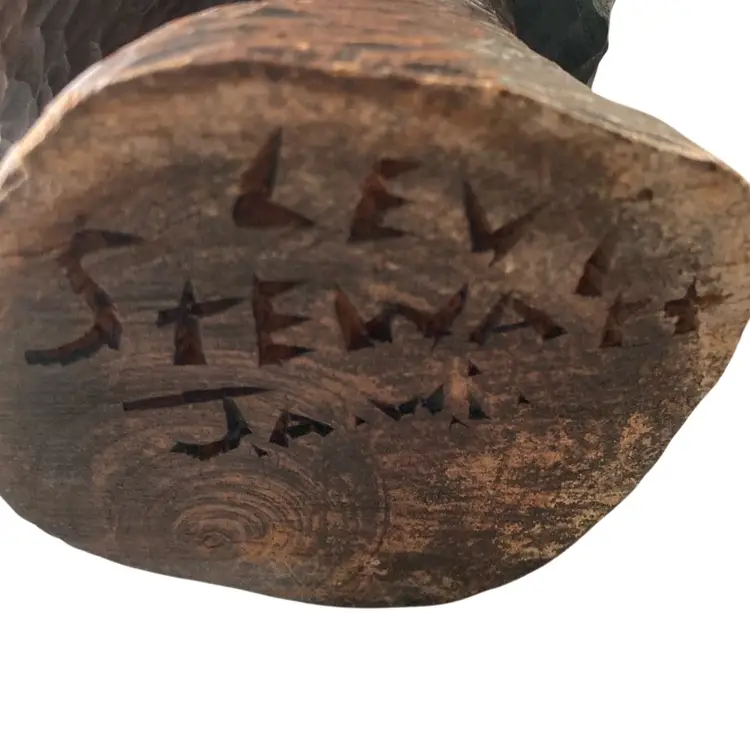 8” x 4.5 wonderful carving probably from Ebony wood. Signed Levi Stewart Ja wi? Last name is not clear. Has a small crack on base as shown in last picture but there is no movement.