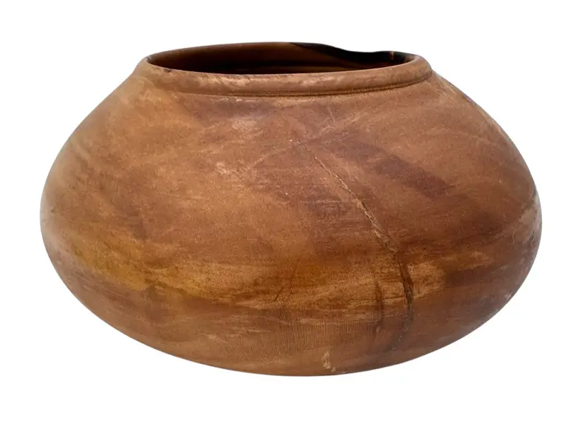 Condition: Cracks in vase previously filled in with glue. Dimensions: 5” wide & 2.75” tall