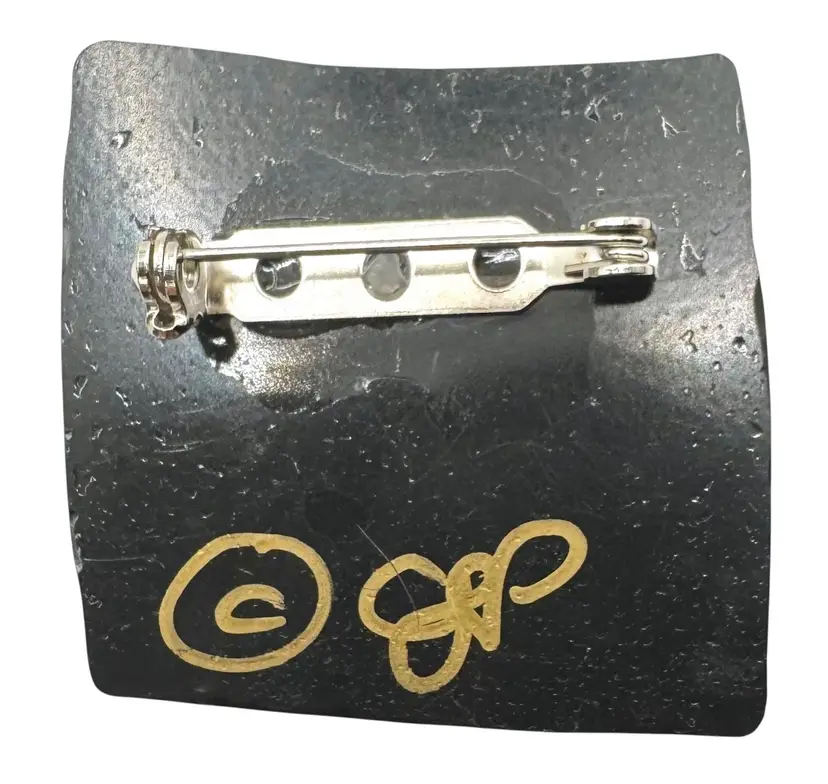 Hand painted and signed brooch with an iris design. The shape is irregular.