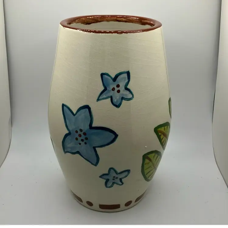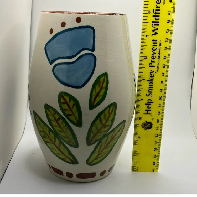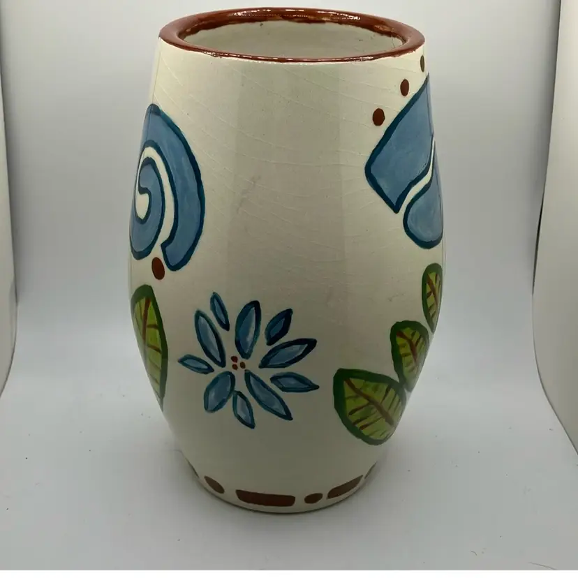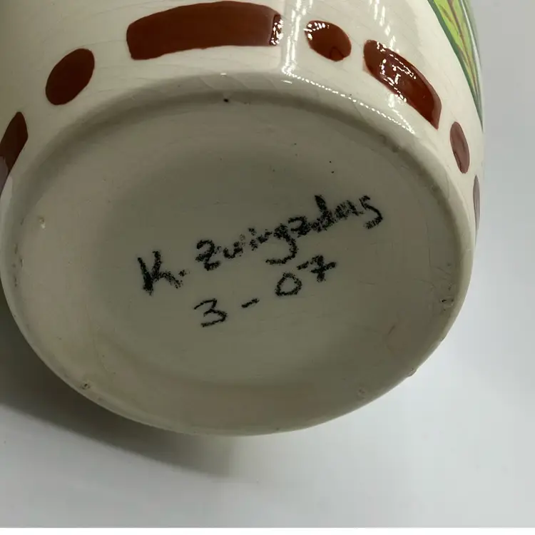 Unique vase that could hold a large bouquet of flowers π Signed K Zwirgzdas 3-07 on bottom. Intentional crazing no chips or cracks.8β tall.