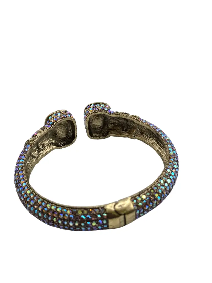 Signed Heidi Daus CN Watermelon Glass And Rhinestone Clamper Bangle Bracelet (A9167)