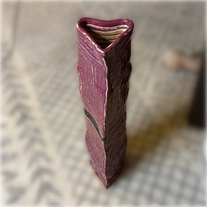 Signed Hobbyist Coil-Pot Heart-Shaped Vase - 12.75” tall and 3.25” wide.