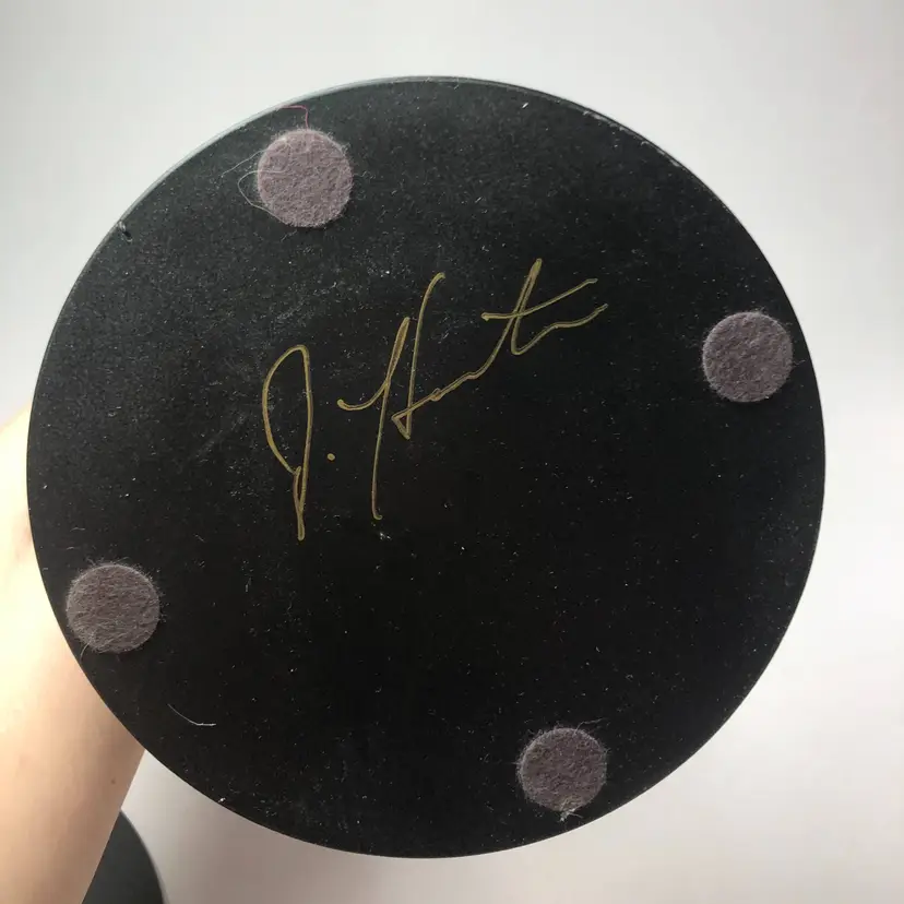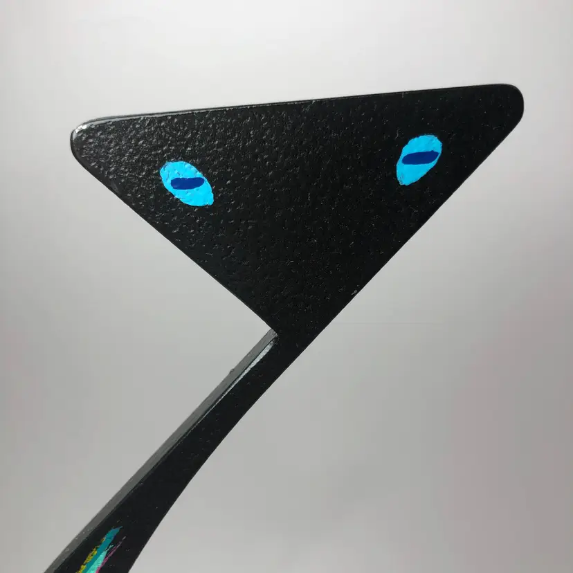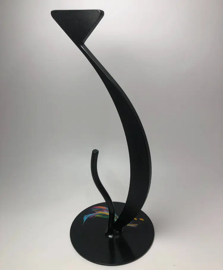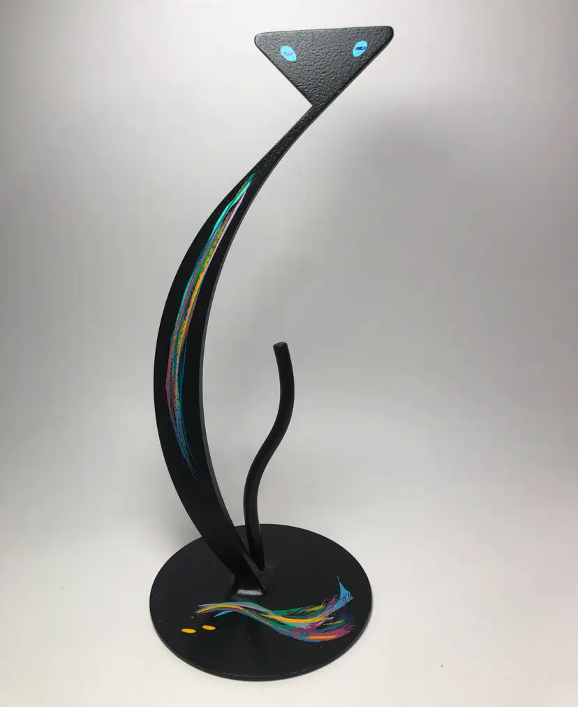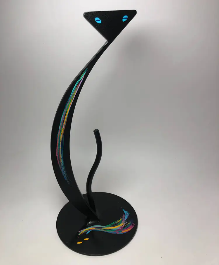 Signed J Hunter 14" Metal Black Cat Art Sculpture Standing Figurine Handmade MCM Modern. 14" tall x 5.5" diameter base. Great condition. Just some light surface wear. Signed by the artist on the bottom. I believe it reads J. Hunter but I am not sure. Any information on the artist is appreciated.