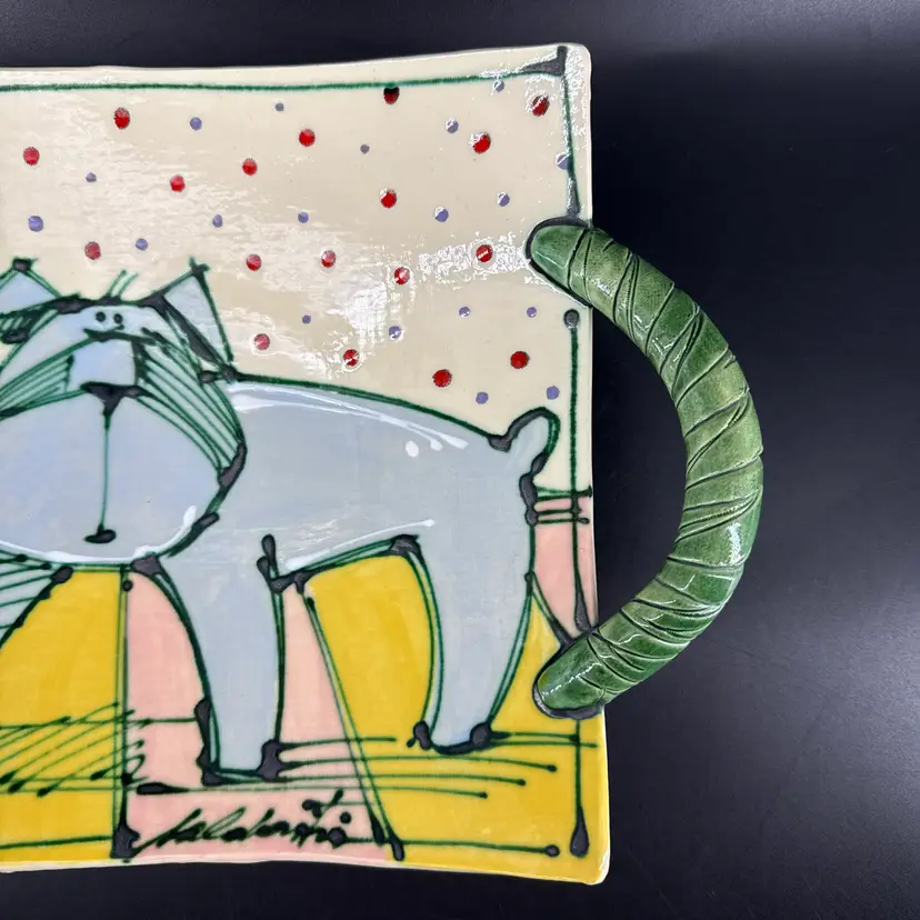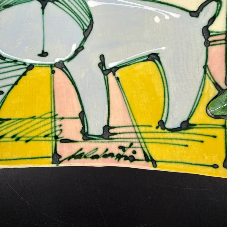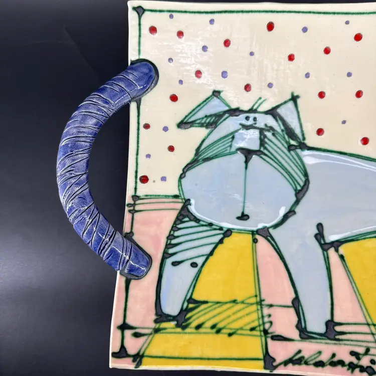 It measures 12.5" handle to handle, 9"x9.5" side to side and is 2.5" tall. It is in excellent condition. There are no cracks, breaks, chips or repairs. (Seer photos).