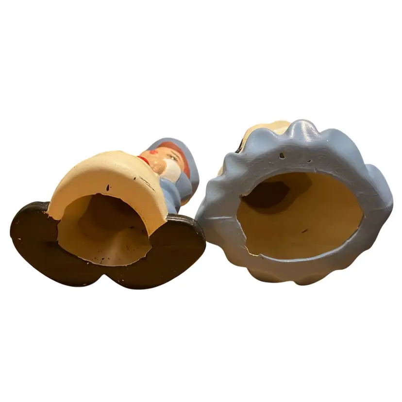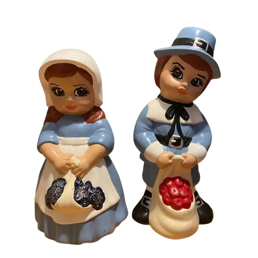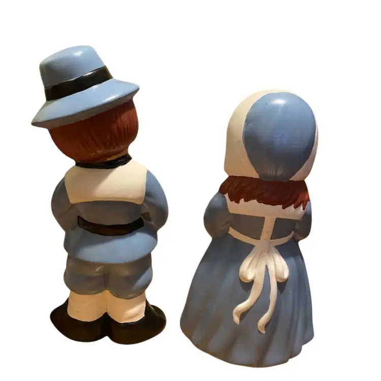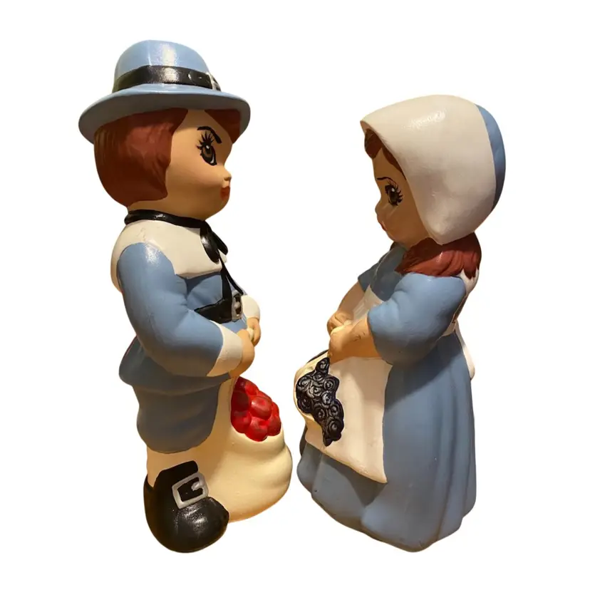 Signed Lucille Pilgrims Approximately 10 1/2 X 4 1/2 Ceramic Pilgrims are in good condition and we hand painted have very minimal paint chips if any