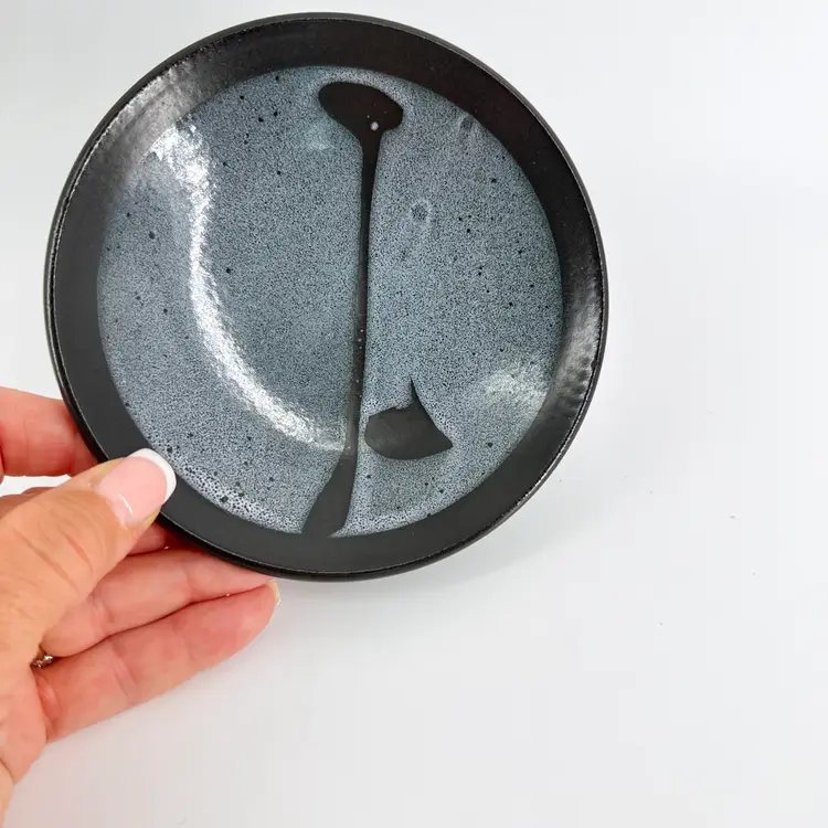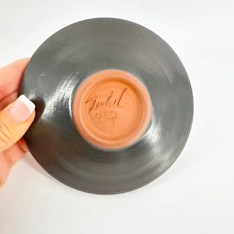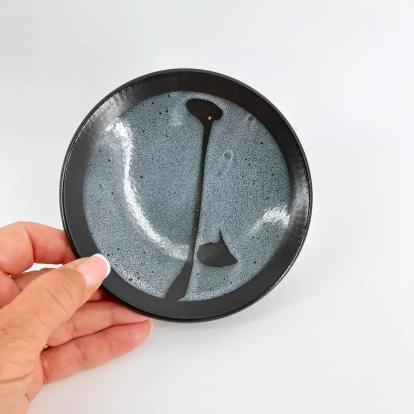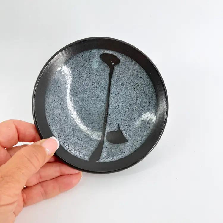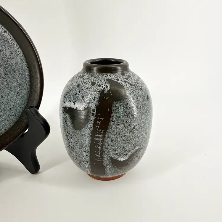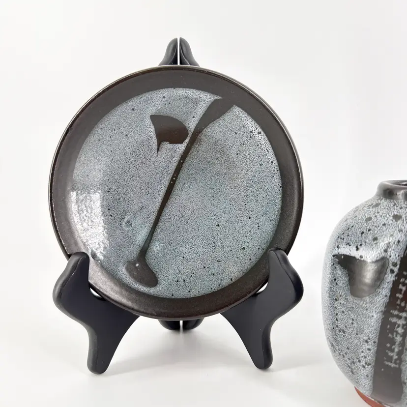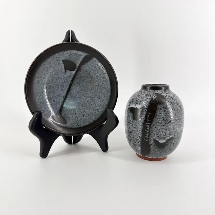 The vase is 4.25" tall and measures 3.5" in diameter. The plate measures 5.25" in diameter. They are both in excellent condition. There are no cracks, breaks, chips or repairs. (See photos).