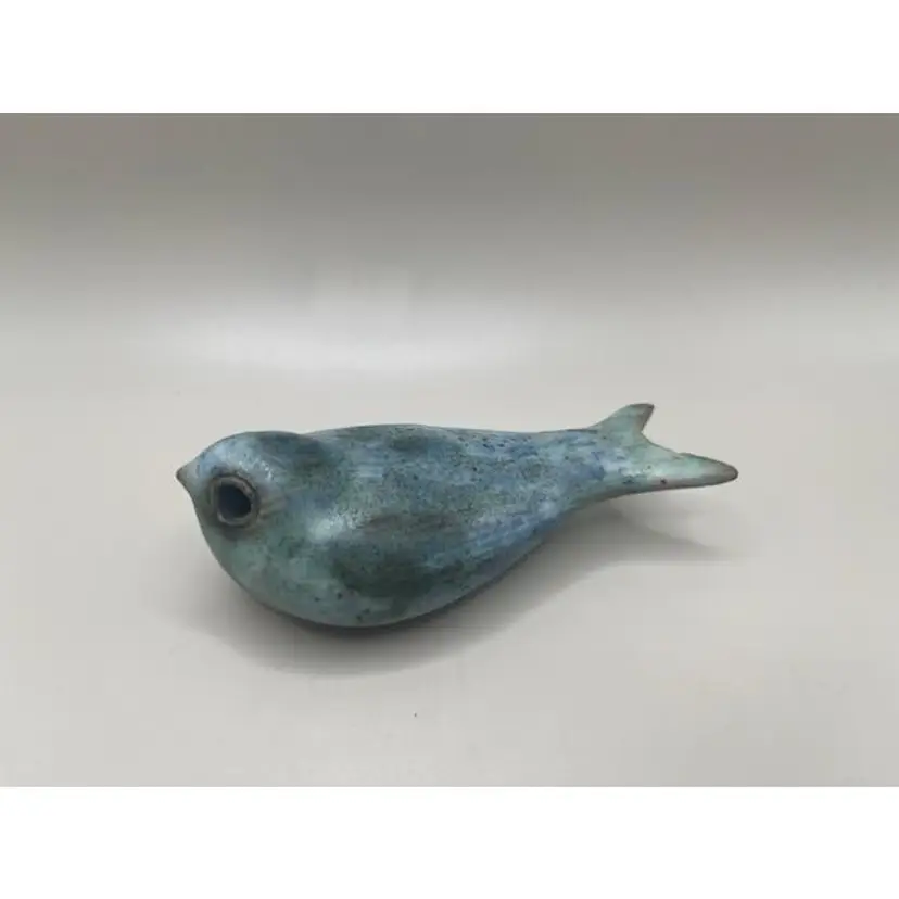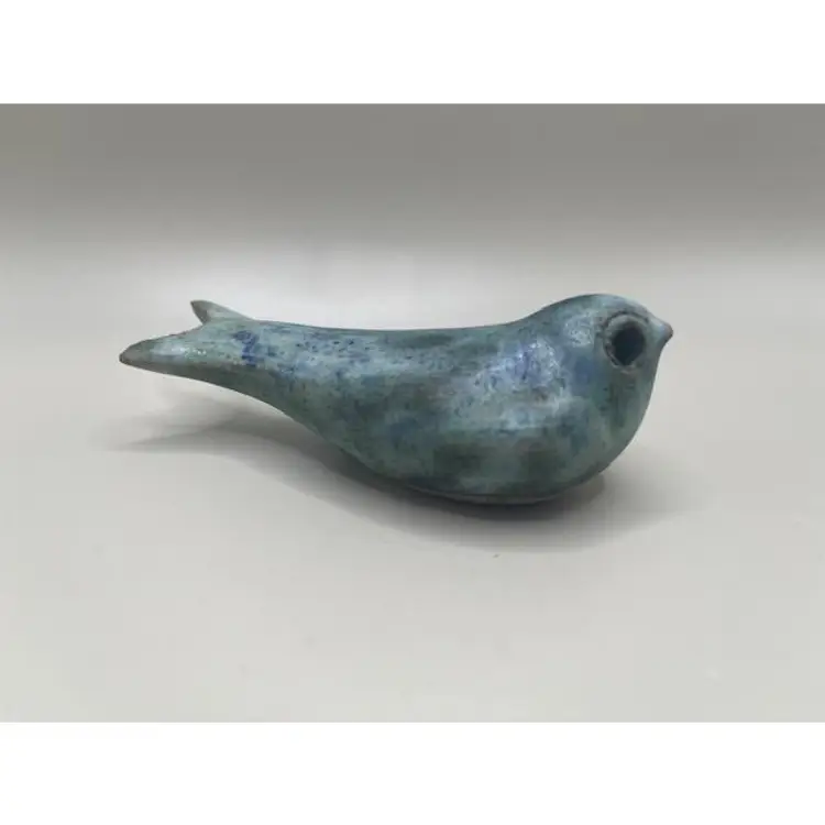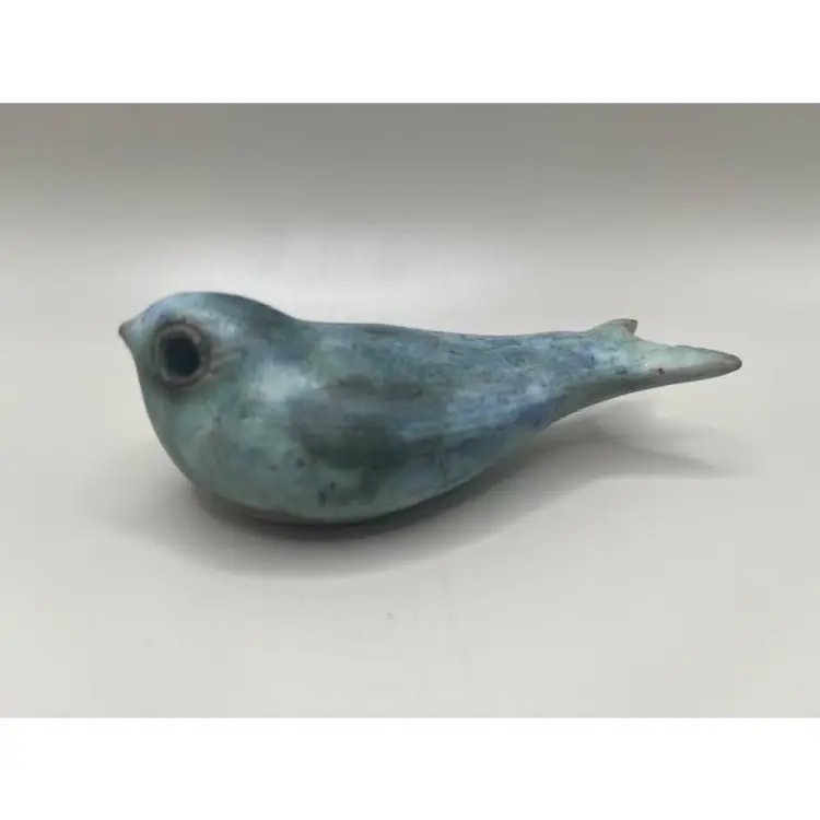 Add a touch of nature to your decor with this charming signed McCarty's Pottery blue swallow figurine. Handcrafted with a lovely blue glaze, this piece is perfect for any bird lover or as a unique decorative accent. Measures approximately 4.5 inches in length. Condition: Excellent vintage condition with no chips or cracks.