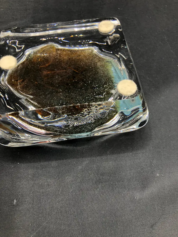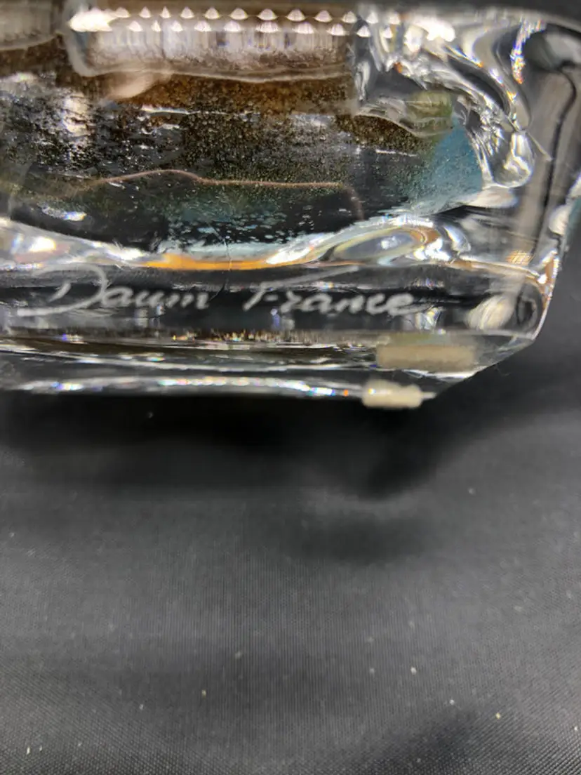 This artisan-crafted frosted glass paperweight features an elegant fish design and bears the maker's signature, marking it as a collectible piece. With its refined aesthetic and substantial 4 x 4 dimensions, it serves as both a functional desk accessory and a sophisticated decorative accent suitable for professional environments or curated collections.