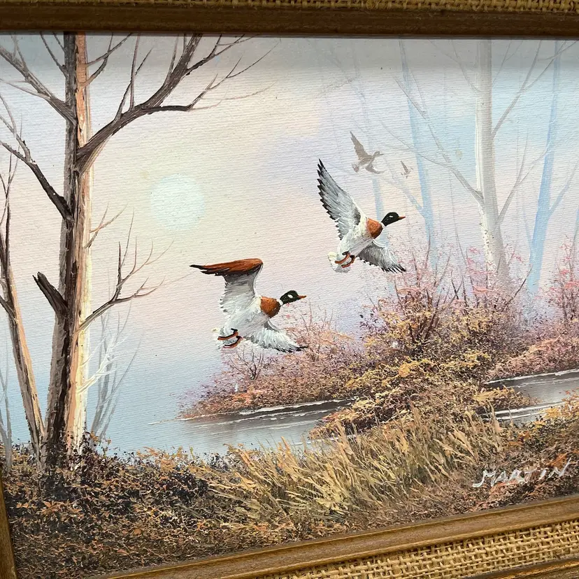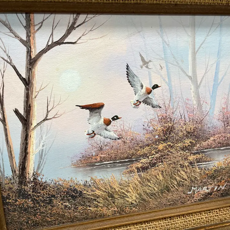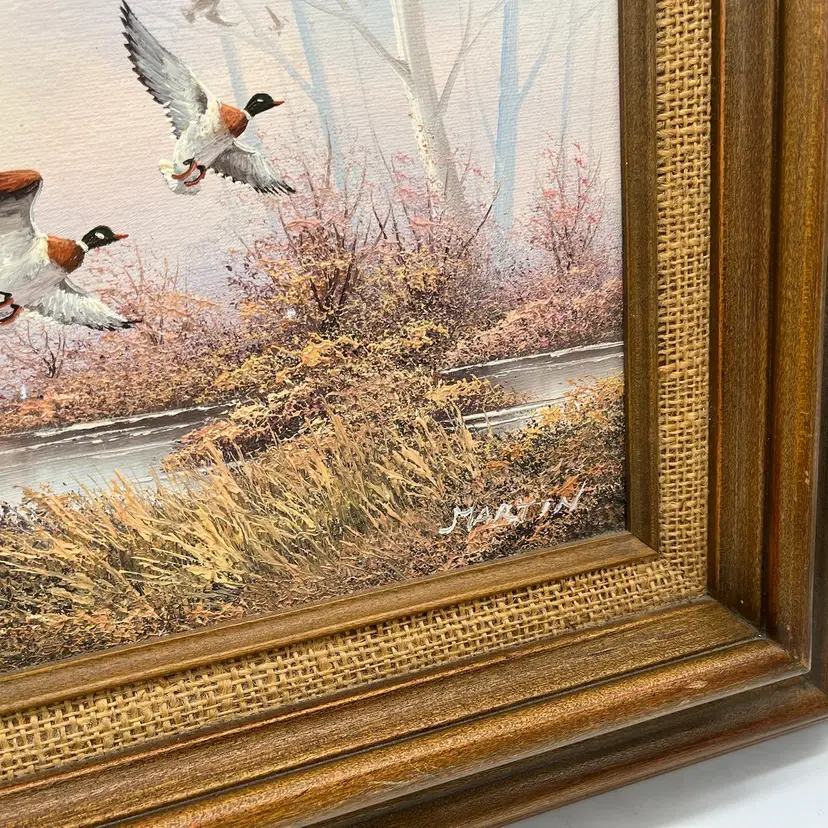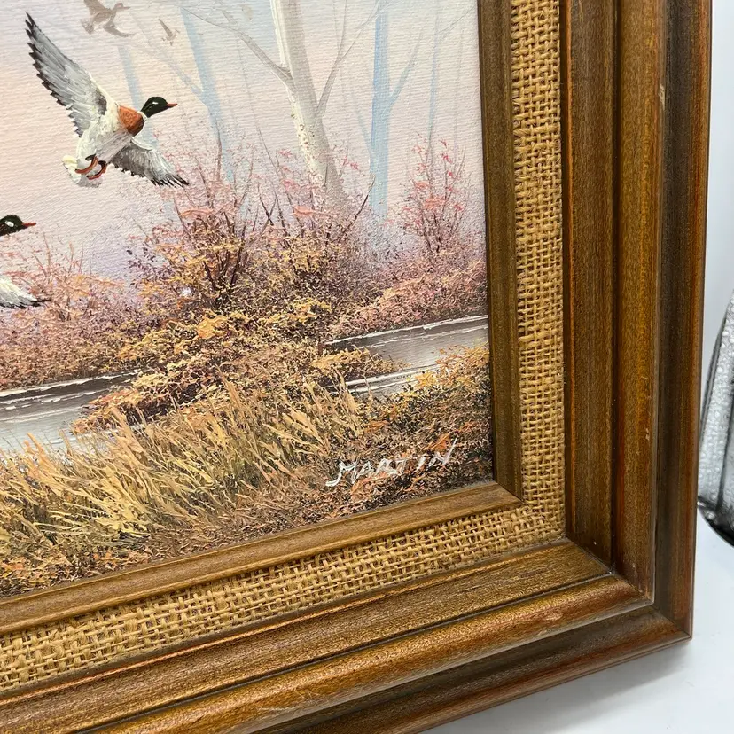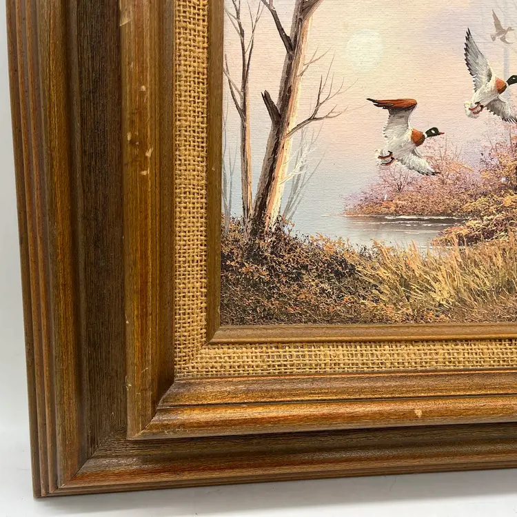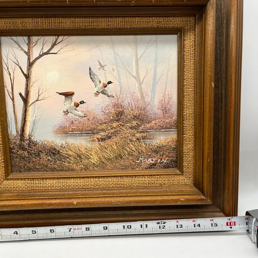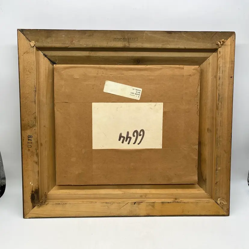 This is a beautiful signed piece. The frame has blemishes adding character. It is 16 3/4” x 15” oil on canvas board I believe.