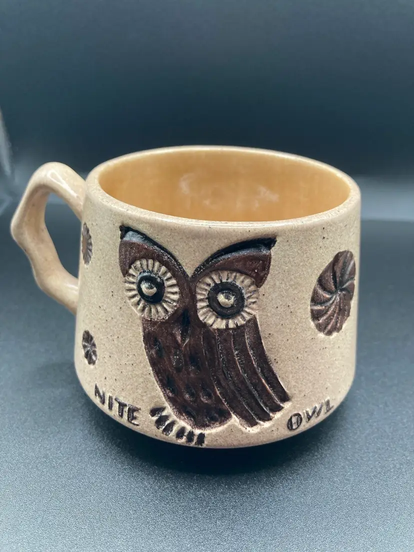Nite Owl Pottery Mug Signed Peggy 2 3\4" tall. NO chips, cracks or flea bites! New to District? Enter code Michel42 into your wallet prior to your first purchase and save $5 off of $10 or more purchase! Thank you for taking a look at my items! Click my Follow Button and I'll Follow you back! Happy Shopping!
