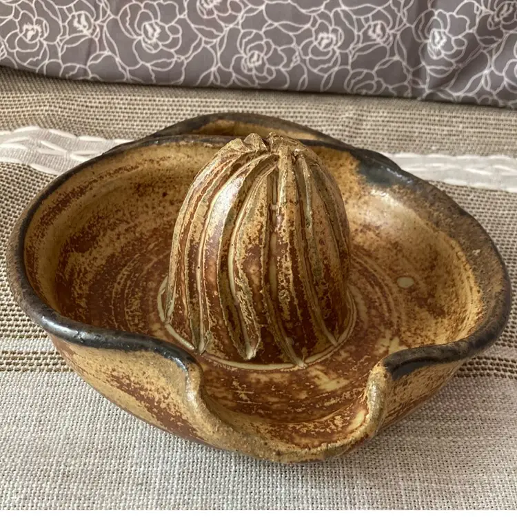 Beautiful pottery juicer signed Gobble. 7” round I. Perfect condition.
