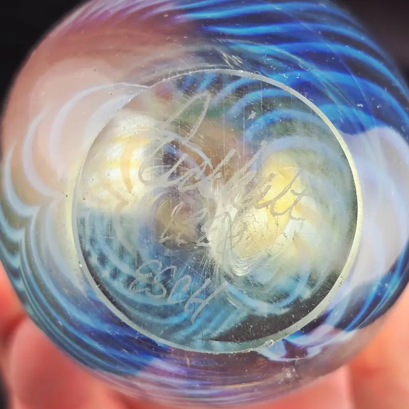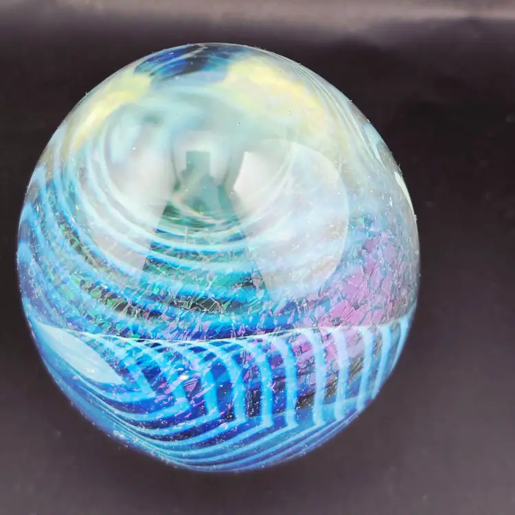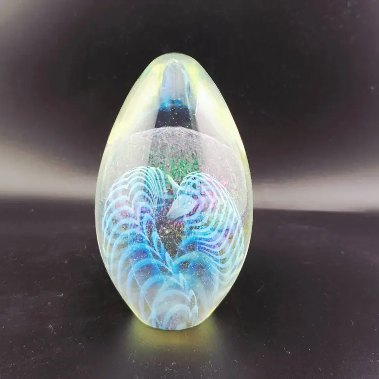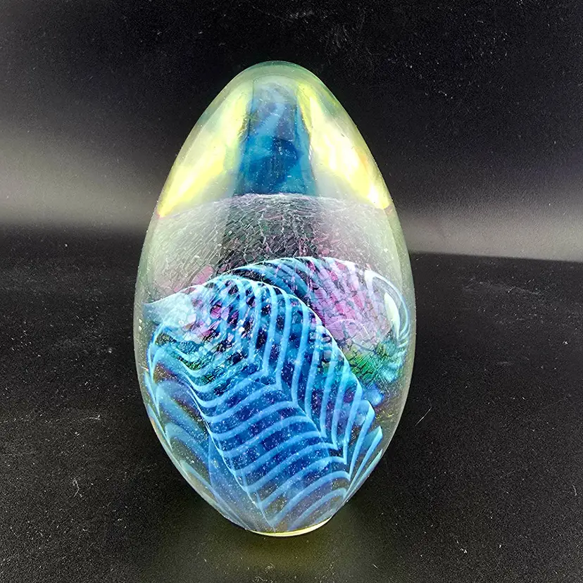 Signed Robert Eickholt 1998 Iridescent Egg Art Glass PAPERWEIGHT