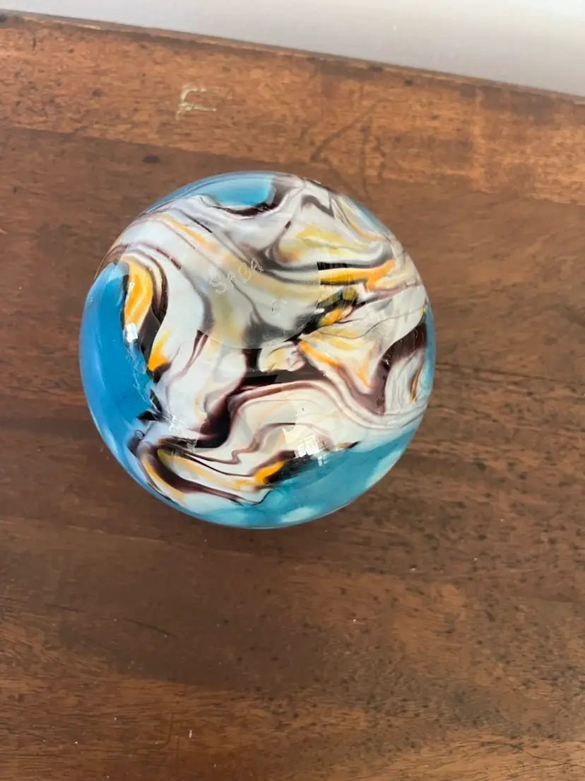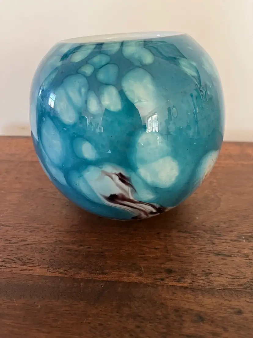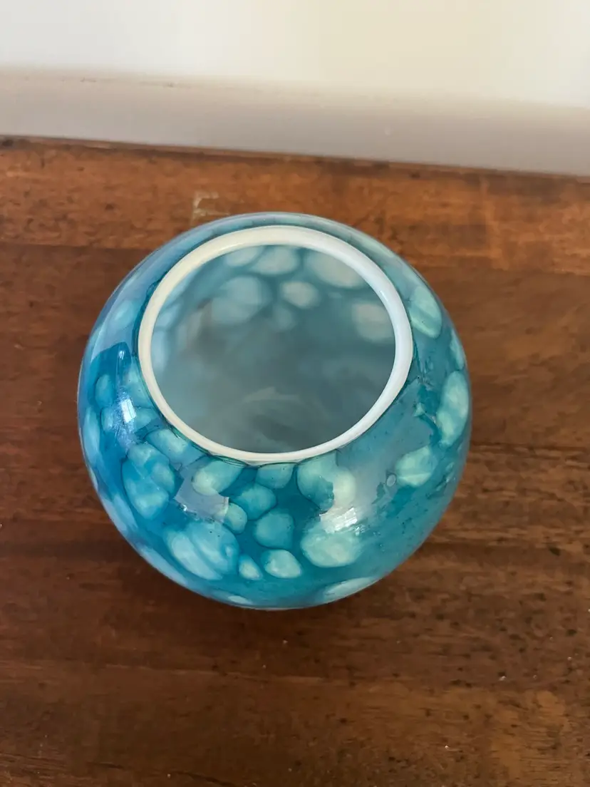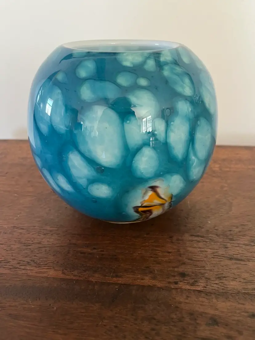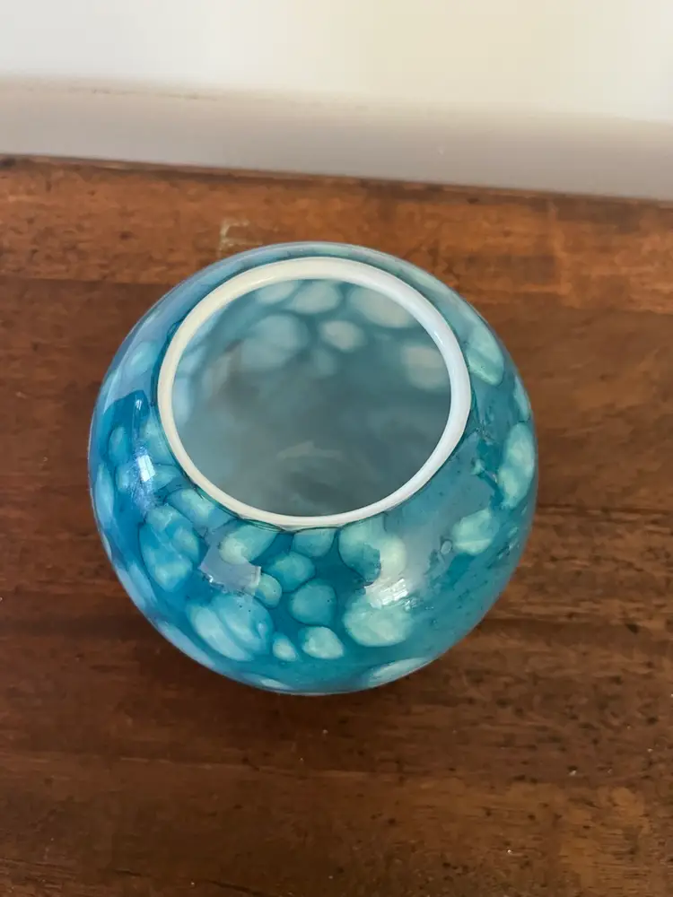 This art glass bowl signed SABA is 5” tall. No chips or cracks