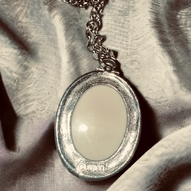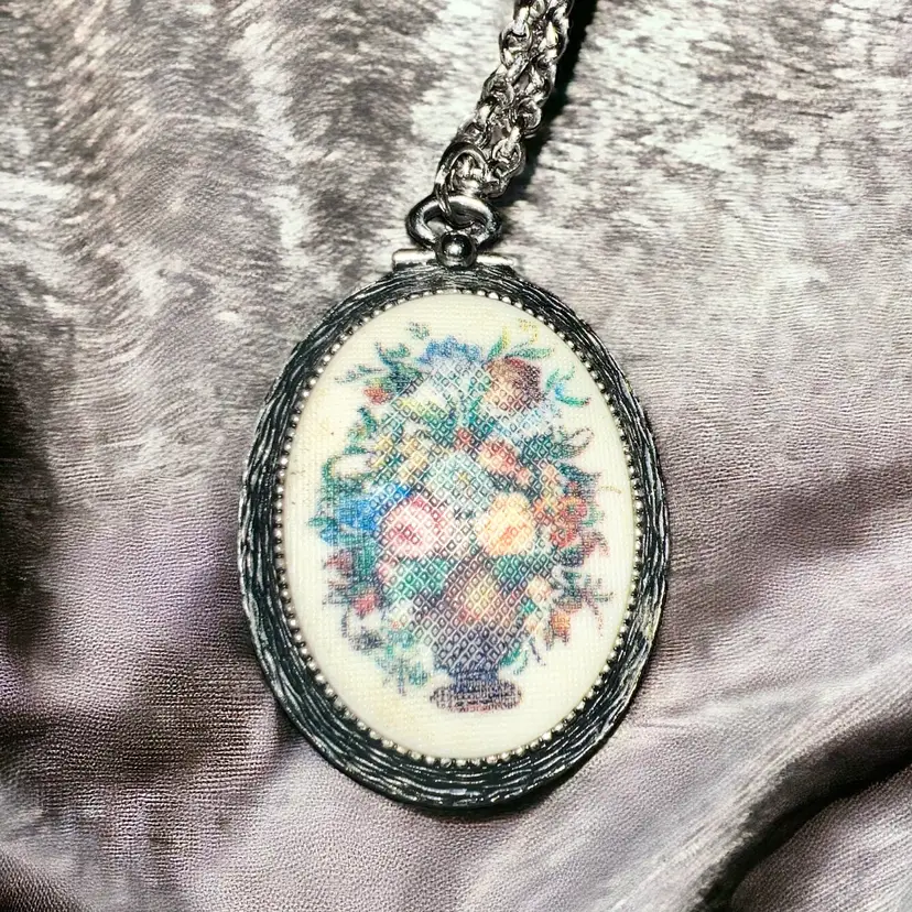 This beautiful necklace from Sarah Coventry boasts a stunning oval bouquet pendant in a silver-plated finish. The intricate flowers in the pendant are in a variety of multicolors, making it perfect for any occasion. The necklace has a 13-inch messaged laying flat, cable chain with a spring lock closure, ensuring that it stays securely in place.