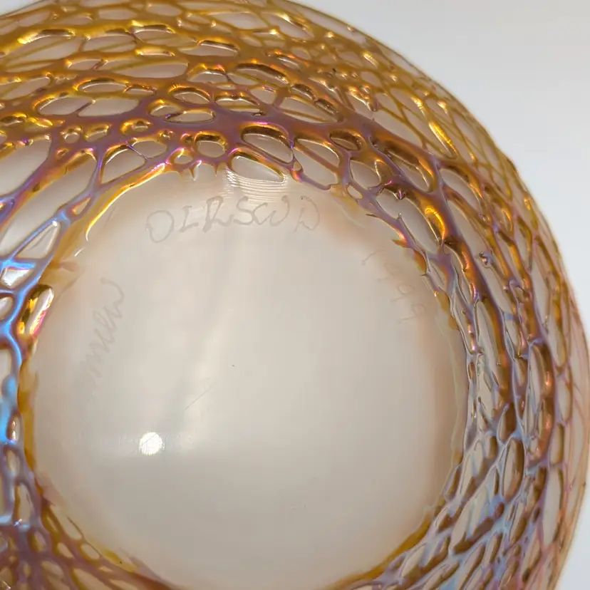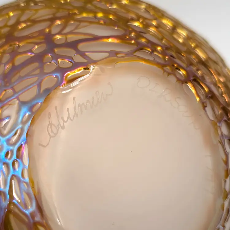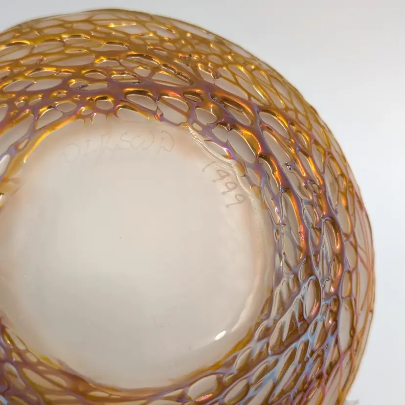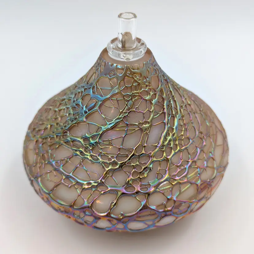 Hand blown oil lamp by artist Stuart Abelman. Polished bottom with an etched signature and date. Included the wick and glass wick holder. Looks like it was maybe lit once.