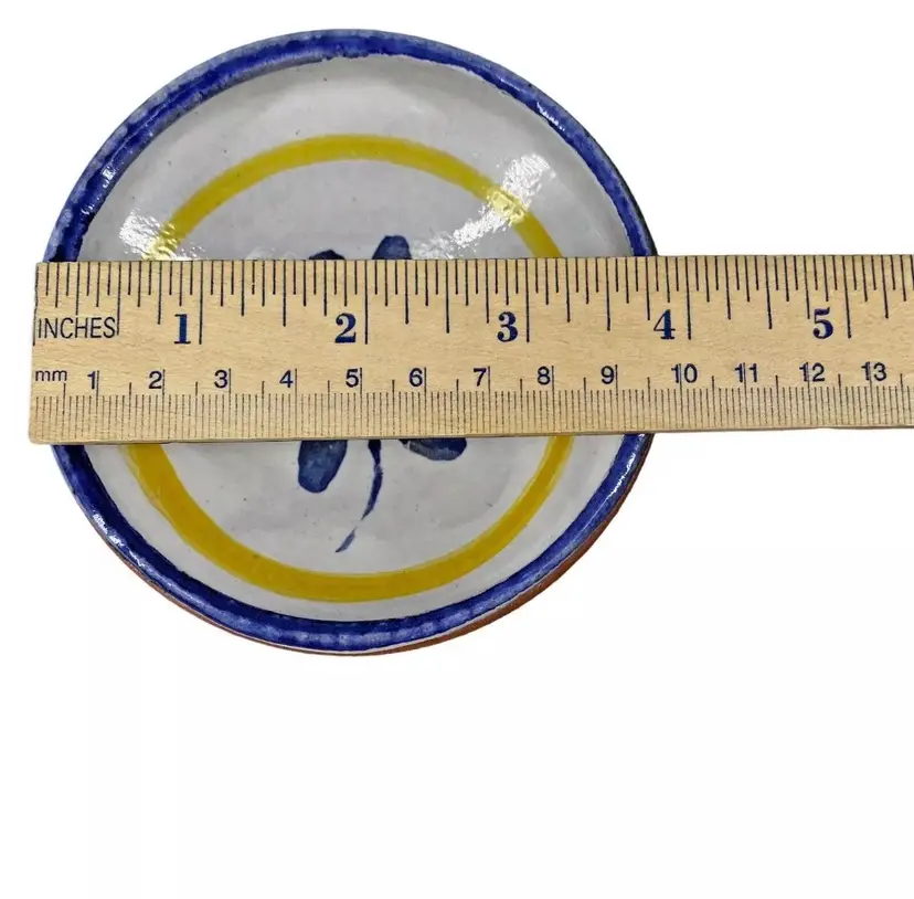 In excellent condition; no chips, scratches or cracks. Measures approximately 3.75”diameter (top) x 2”diameter (base) x 1.5” tall.
