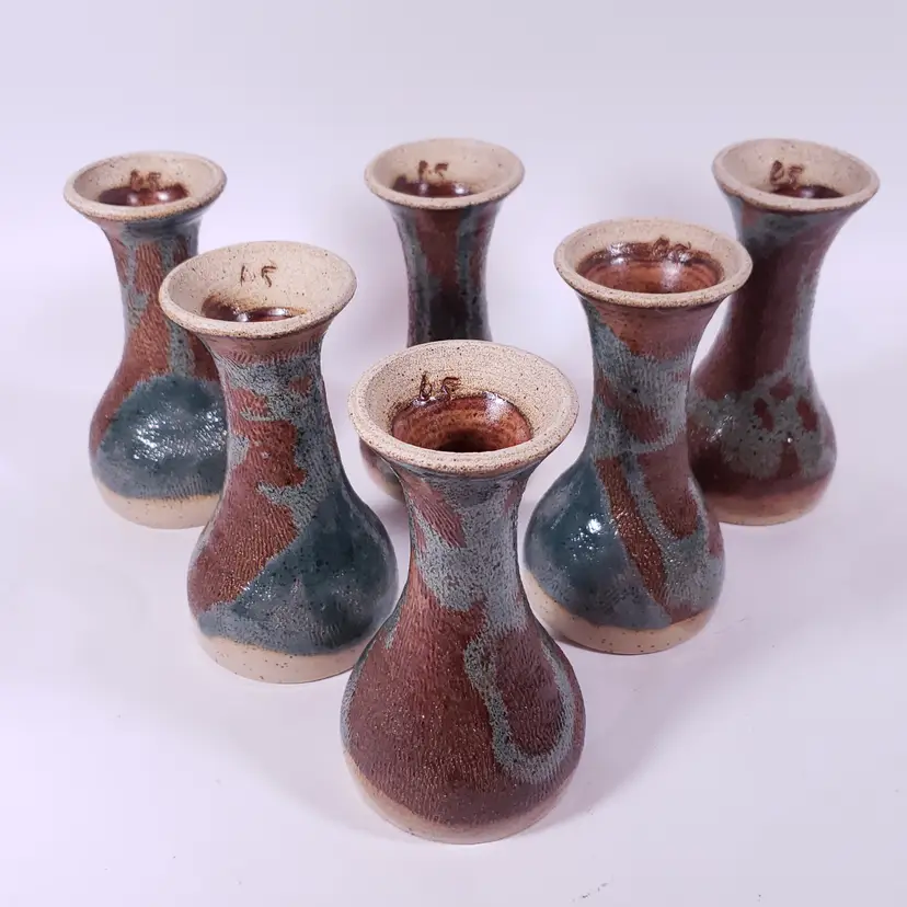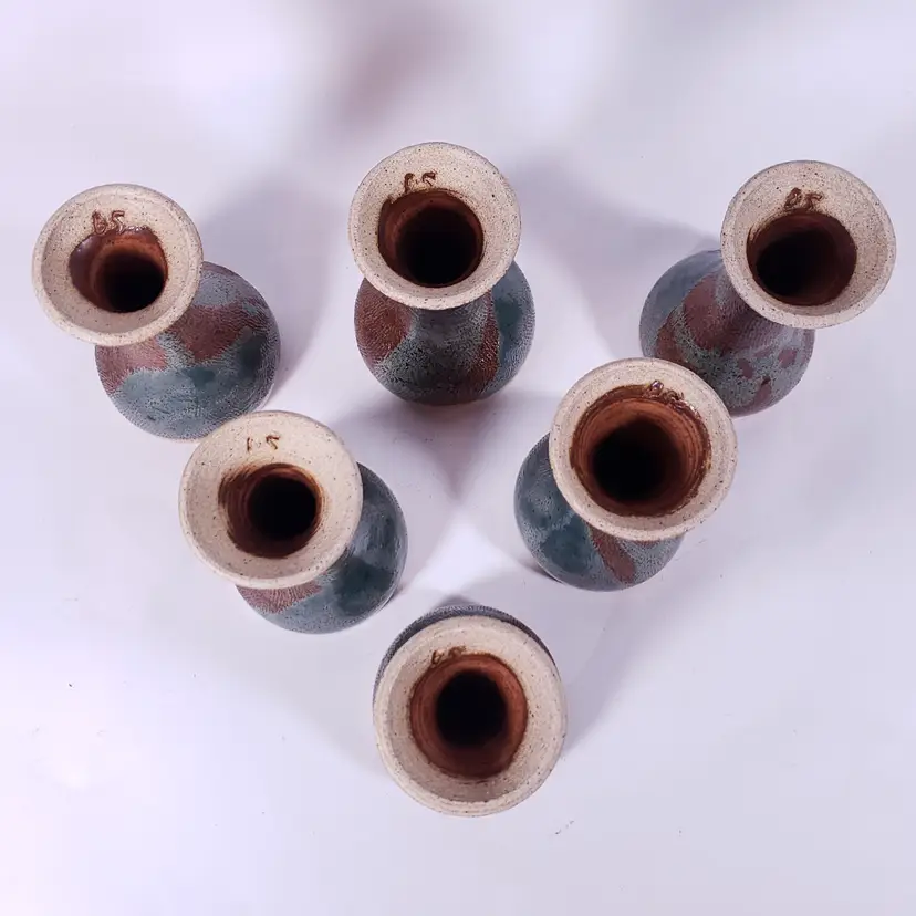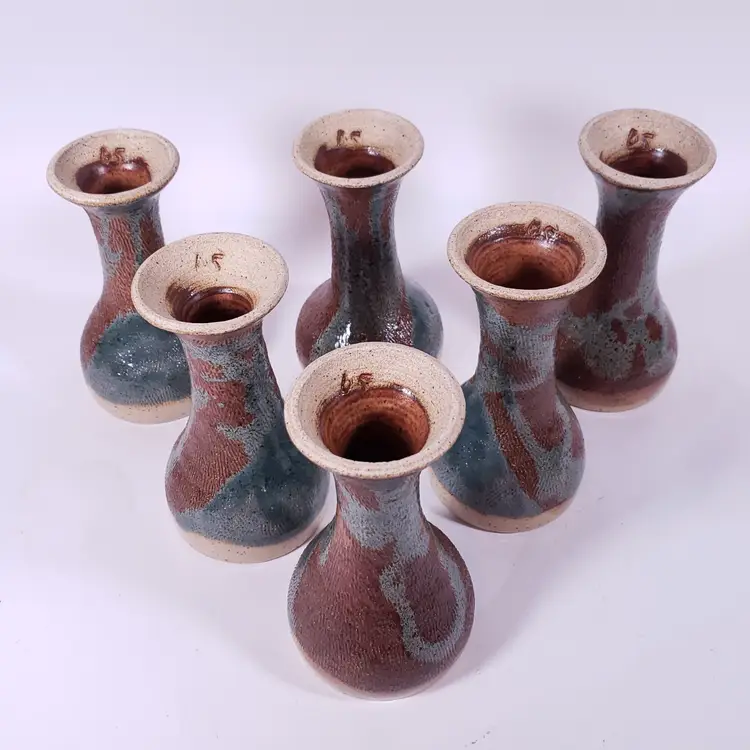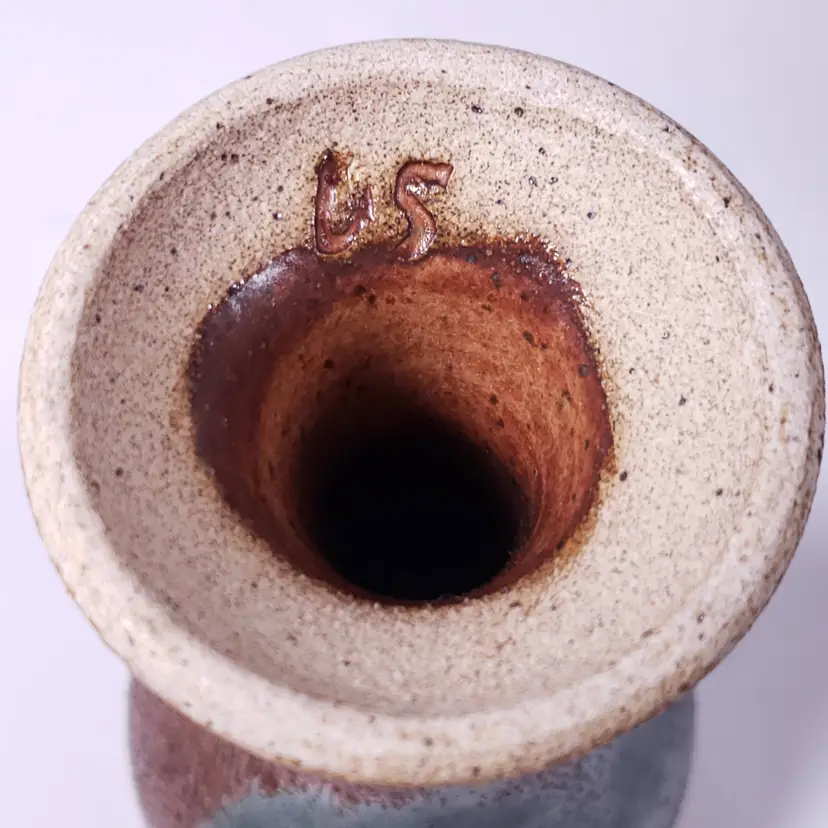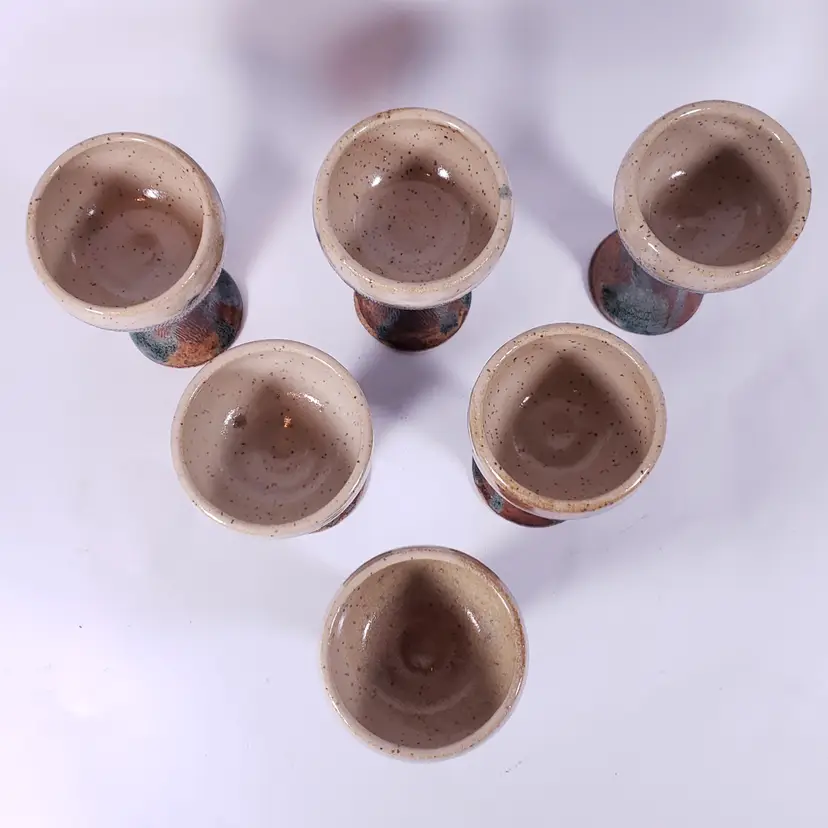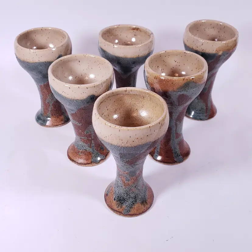 SIGNED Studio Pottery Blue Brown Textured Stoneware GOBLET CHALICE SET