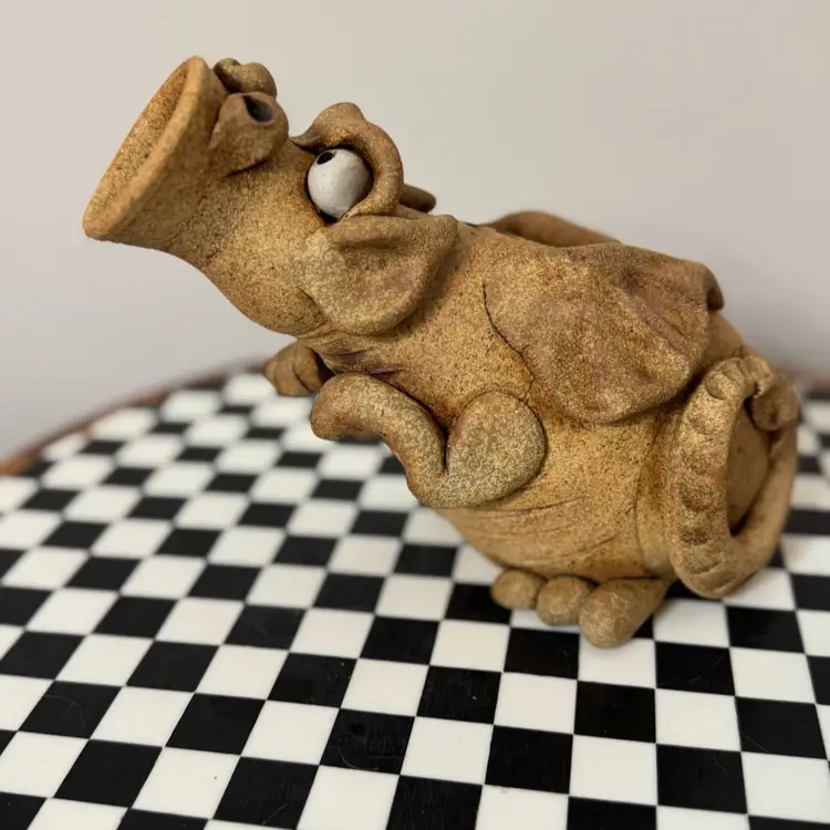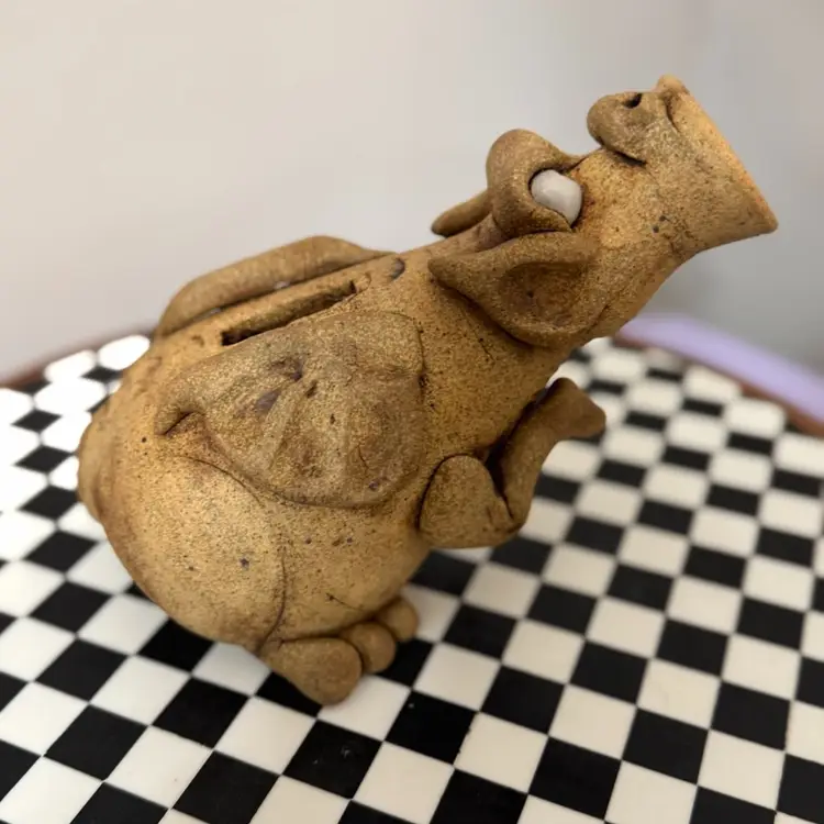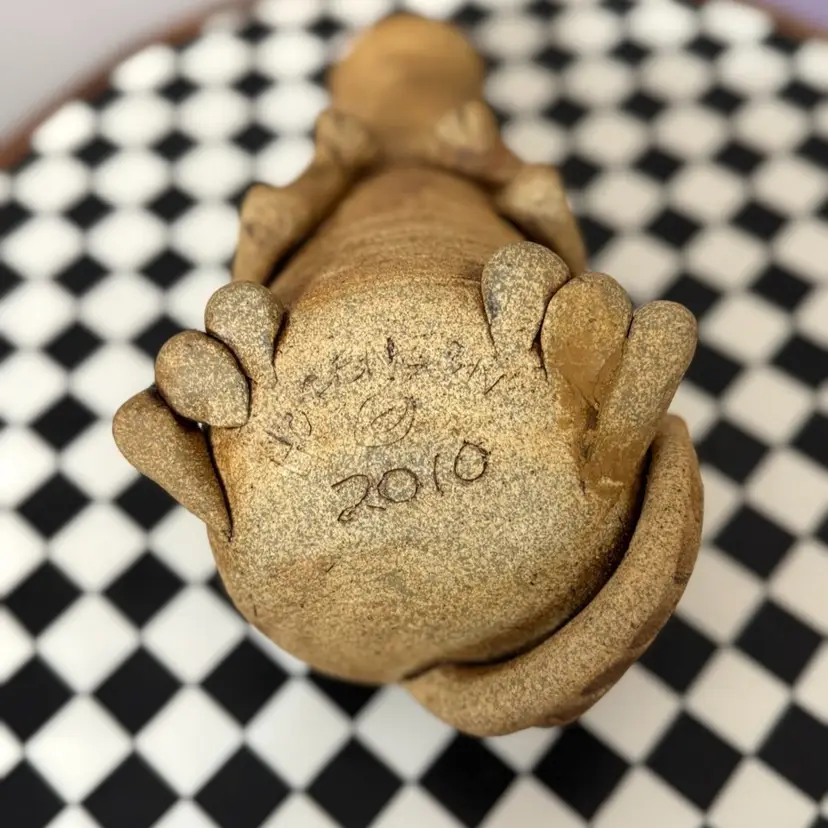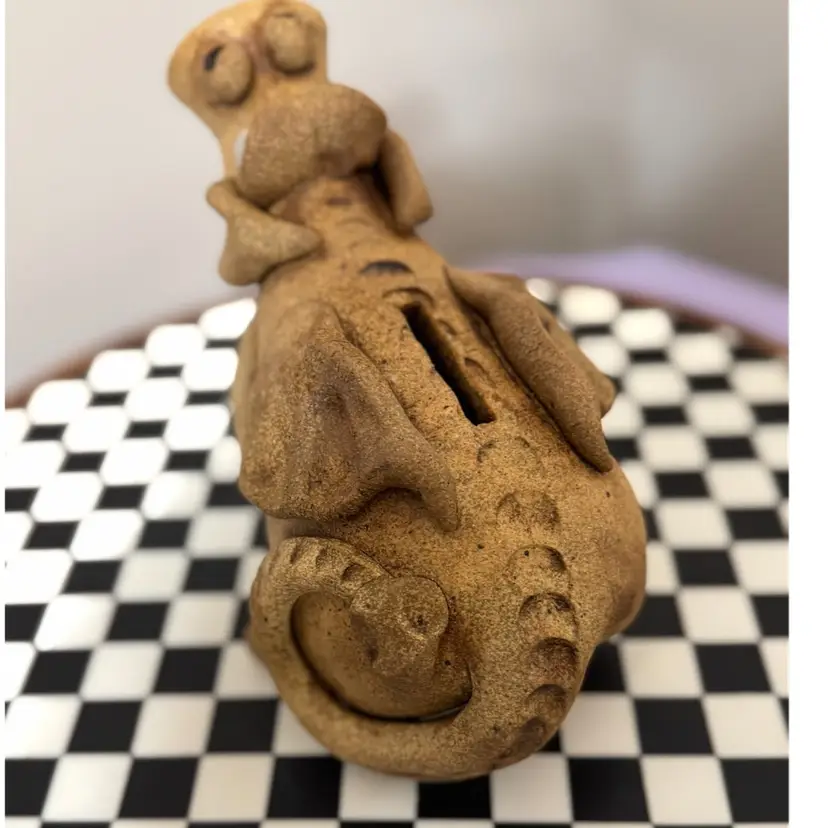 Awesome signed dragon bank, dated 2010. Excellent condition. Measures about 7 inches tall and 8 1/2 inches long from snout to tail. Made by local Kansas City artist.