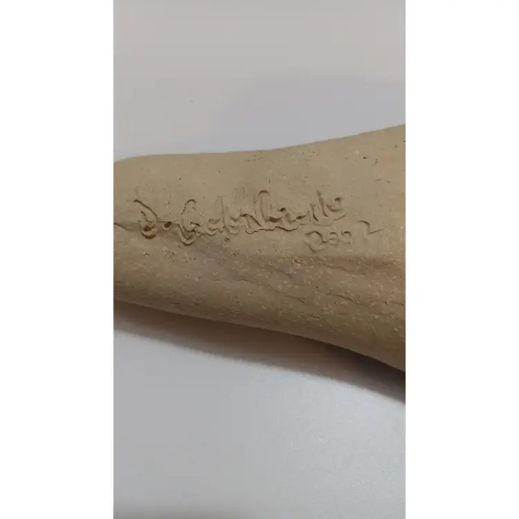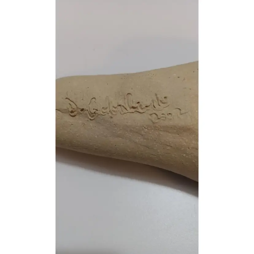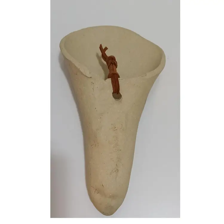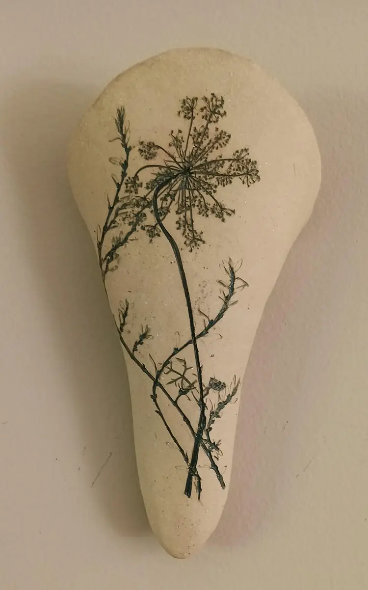 Signed Studio Pottery Wall Vase With Very Nice Imprint Of Queen Anne's Lace; 8.5" L x 5" W; no chips or cracks; can be used for fresh or dried flowers! Nice handmade piece of art!