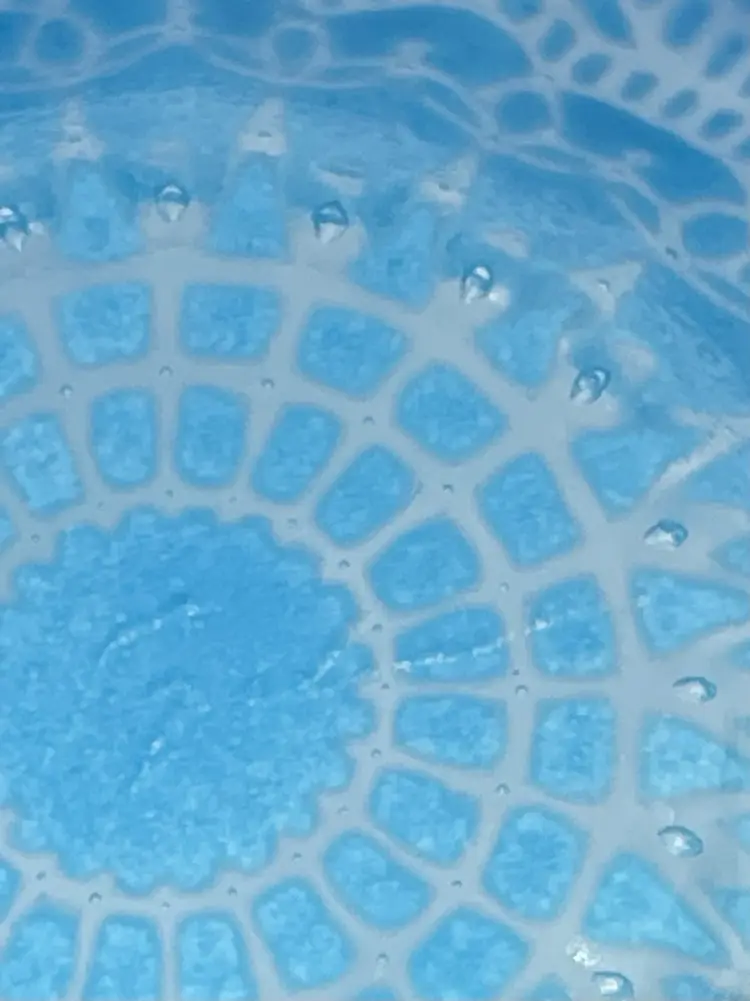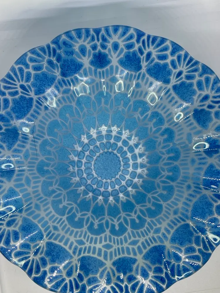 Signed Sydenstricker fused glass bowl. No chips or cracks, measures approximately 6 inches across and approximately 2 inches high.
